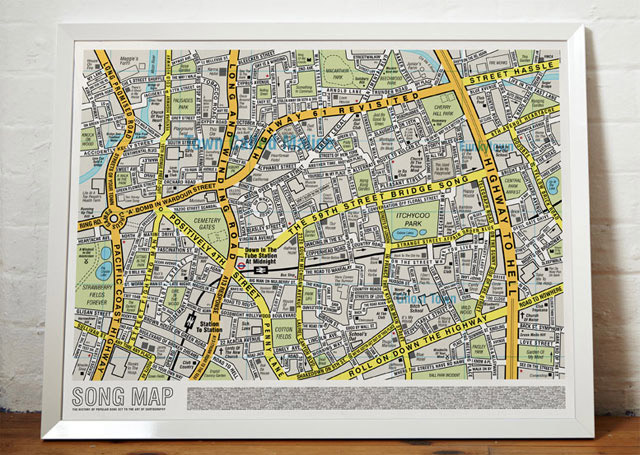 Schönes Ding vom Design-Studio Dorothy, das eine Straßenkarte voll mit Songtiteln erstellt hat. Auf dem 60x80cm-Print wurden sämtliche Gebäude-, Straßen- und Stadtnamen aus der Welt der Musik geborgt. Highway To Hell, Hotel California, Long And Winding Road – alles dabei. Kostet in der unlimited Version 20£, dürfte für Weihncahten leider zu spät kommen…