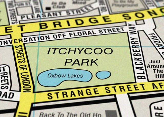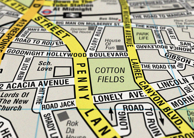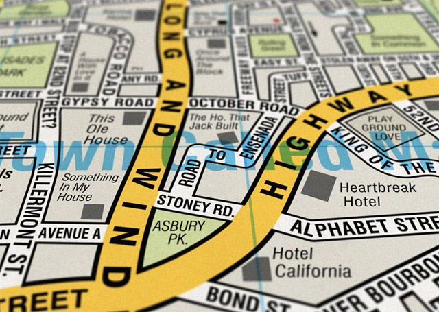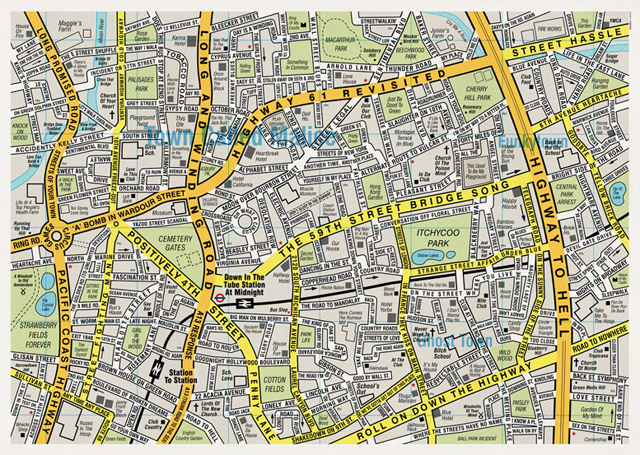 „From Highway to Hell to Penny Lane, Itchycoo Park to Heartbreak Hotel. And just like places in our own neighbourhood, some are really good and some are best avoided like the plague – remember Love House by Sam Fox? For the real music geek there’s an A-Z key of all the songs featured on the map with the bands that sang them.“