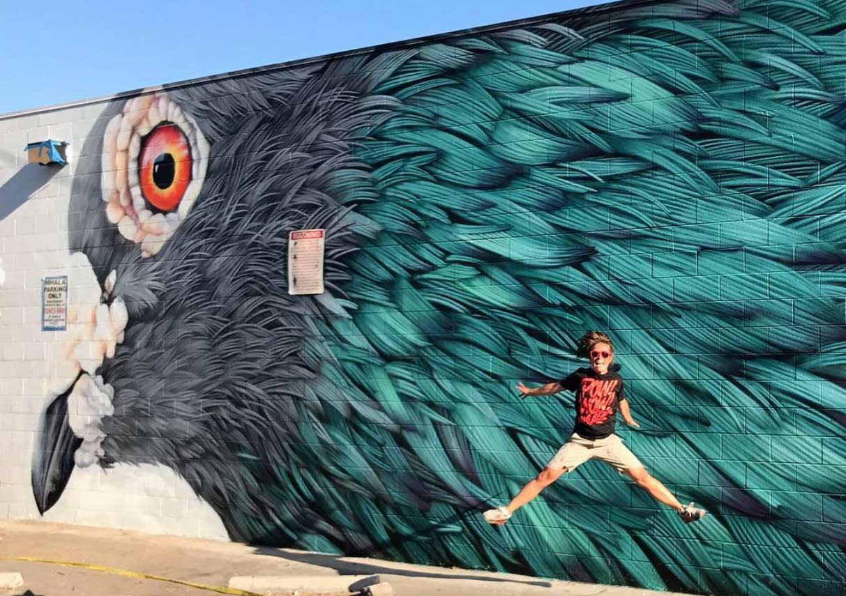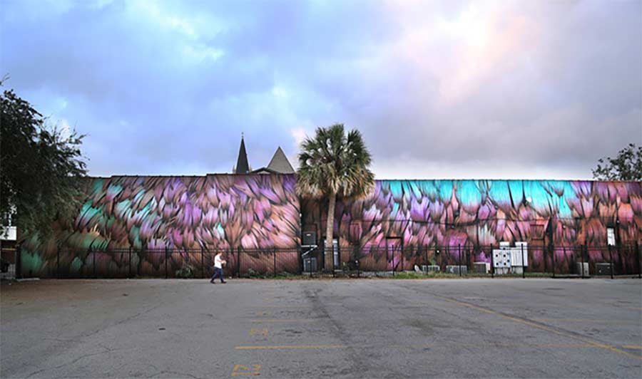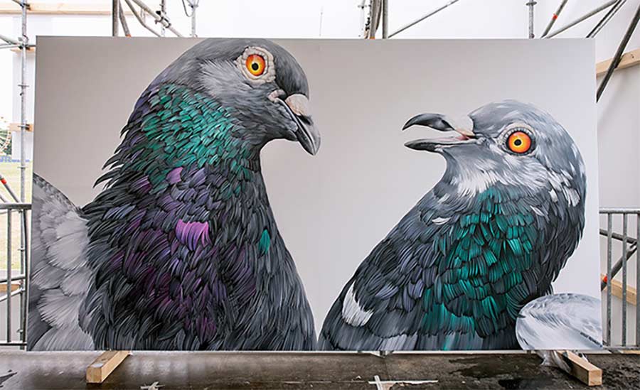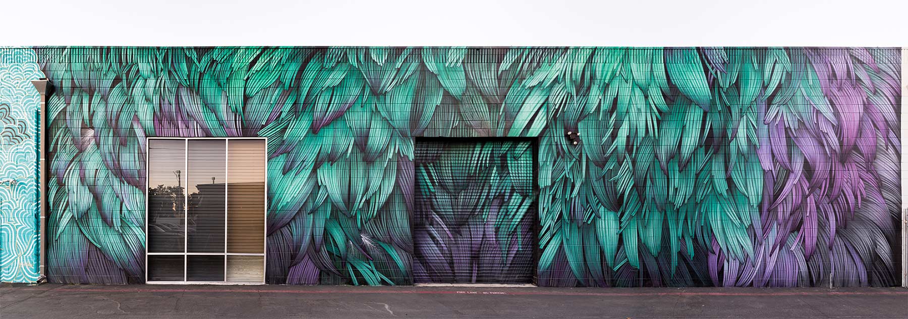 Tauben sind für viele von uns jetzt nicht wirklich die schönsten Geschöpfe auf Erden. Für Adele Renault schaut das anders aus. Die Künstlerin liebt es, die städtischen Vögel zu malen – im kleinen und überdimensional großen Format. Vor allem die großflächigen Murals machen einiges her und müssen wahrlich gigantisch wirken, wenn man um die Ecke biegt und einen plötzlich so ein Vogel angafft. Visuell am meisten gefallen mir aber die Wandfüllenden und farbenfrohen Federkleider, die Renault an Fassaden sprayt. Und Menschenportraits kann sie übrigens auch (daher der Name ihres bald erscheinenden Buches „Feathers and Faces“).