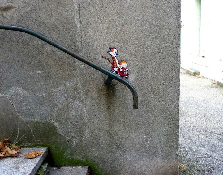 Feine und kreative Street Art von OakoAk aus Frankreich, der sich selbst beschreibt als „who likes to play with urban elements“. Und spielend einfach sehen seine Kreationen allemal aus. Vor einigen Monaten hatte ich bereits einige Bilder von ihm gebracht, aber jetzt sind so viele neue Ideen dazu gekommen, dass ein zweiter Rundgang lohnt.