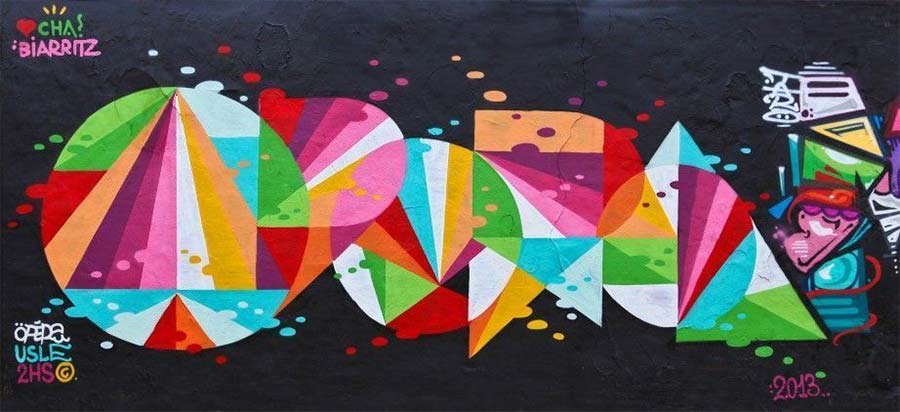 Hinter dem Künstlernamen Opéragraphiks steckt der französische Street Artist Stéphane Vignal. Der Pariser hat sich vor allem mit Graffitis einen Namen gemacht gehabt, schwingt jetzt aber auch gerne abseits von Wänden den Pinsel oder Mauszeiger. Heraus kommen dabei stets dynamische Motive voll Farbe und geometrischer Muster.