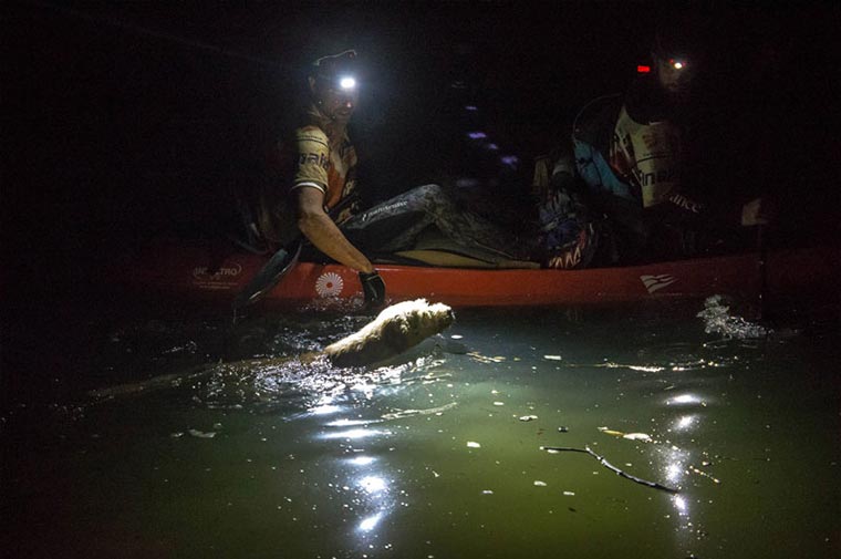 Mehrfach hatten sie versucht, sich von Arthur zu verabschieden, doch stets lief er ihnen nach. Am Ufer zurück gelassen sprang er ins Wasser uns schwamm den Kajaks hinterher, in denen das Team unterwegs war. Da war klar, dass Arthur das fünfte Team-Mitglied wird. Fortan schlief er mit den anderen, lief durch Schlamm, musste hier und da unterstützt werden und unterstützte alle anderen – zumindest moralisch.