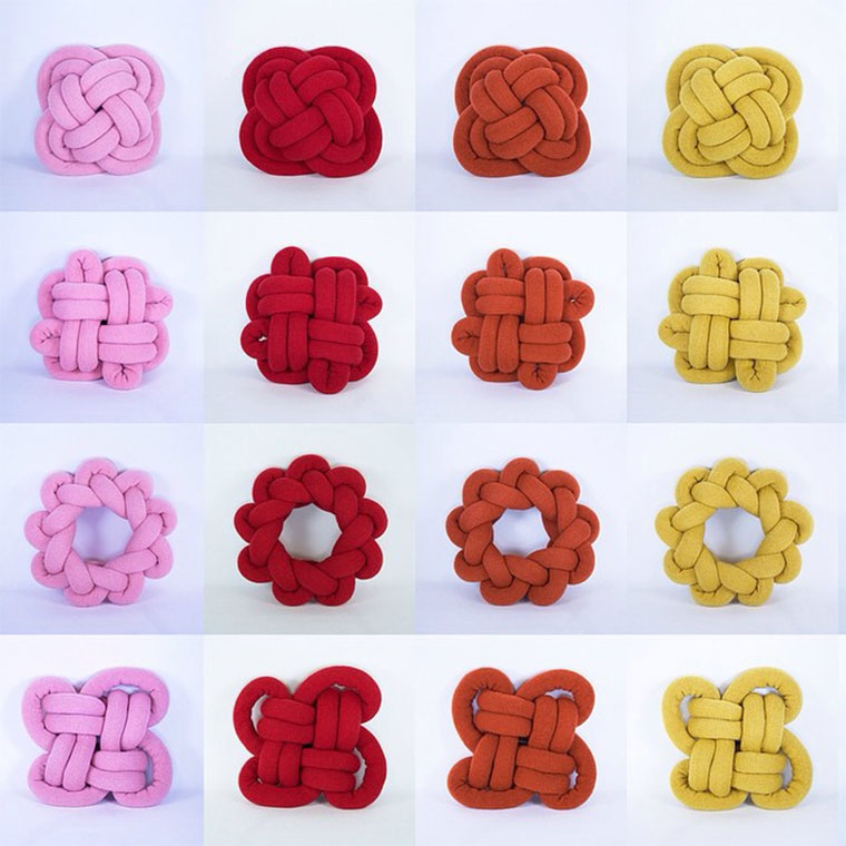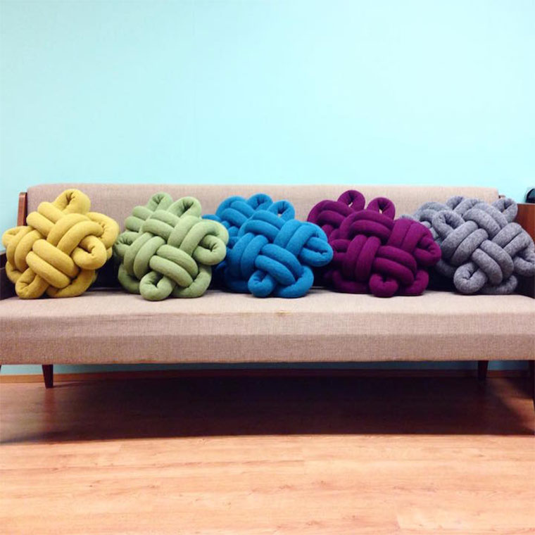 Knoten werden nicht wirklich mit Bequemlichkeit assoziiert. Ragnheiður Ösp Sigurðardóttir schafft jedoch mit ihren Knot Cushions ganz und gar besonders aussehende Exemplare. In verschlungener Schlauch-Manier gestrickt, sehen die Kissen aus, wie verknotete Riesenseile. Nicht nur schick, sondern kann man auch recht praktisch „umknoten“.