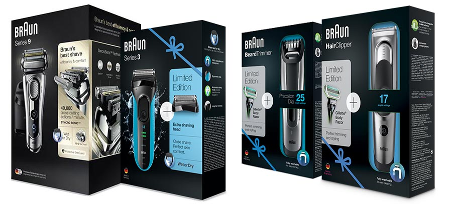 OPTION 3: Das Styling-Set, bestehend aus dem Braun Bartschneider und dem Braun Haarschneider. Für alle, die Form statt Kahlschnitt bevorzogen.