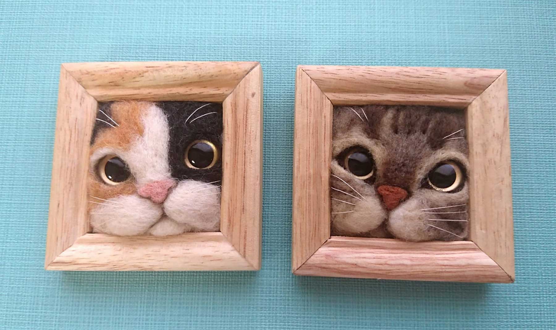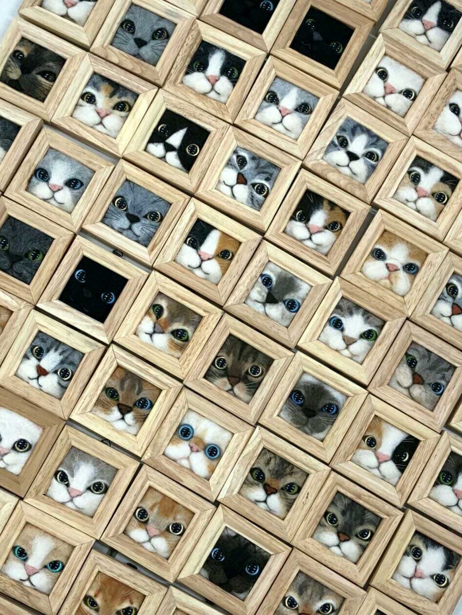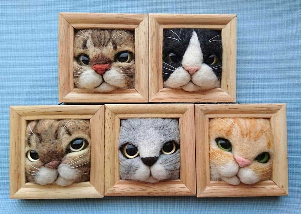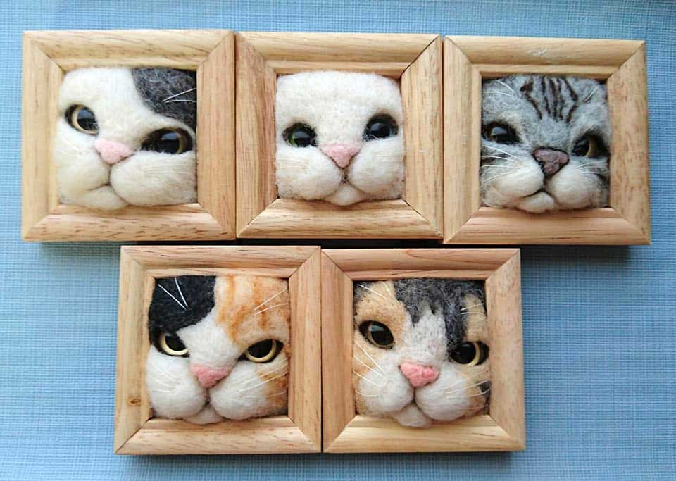 Leider verschickt die Japanerin ihre Arbeiten nicht Übersee. Aber aus aller Welt könnt ihr euch weitere dieser süßen Filz-Werke von Fujita Satomi auf ihren Social-Media-Profilen bei Instagram (@satosatoyoumouclub) und Facebook anschauen. Auch welche, die nichts mit Rahmen und/oder Katzen zu tun haben, wie diese hier: