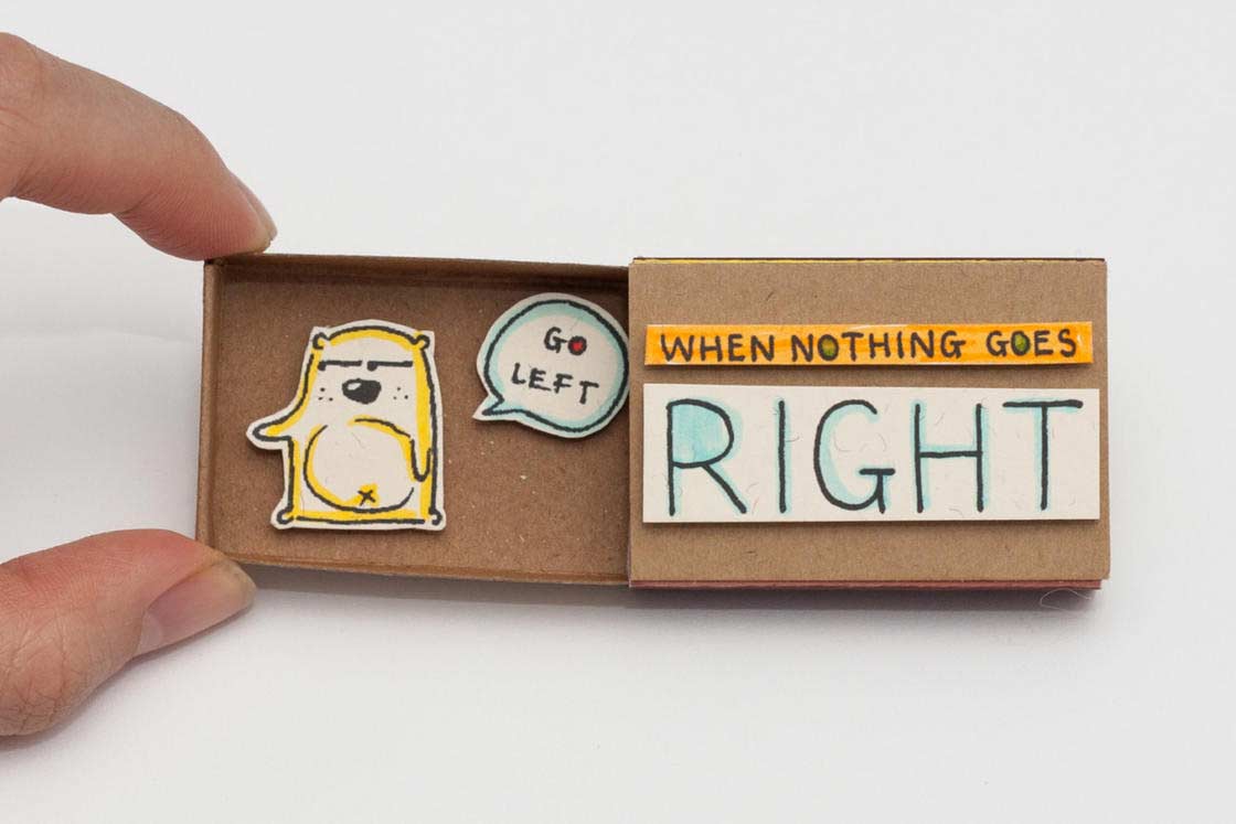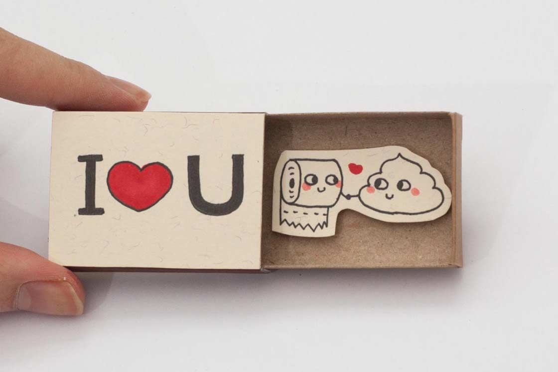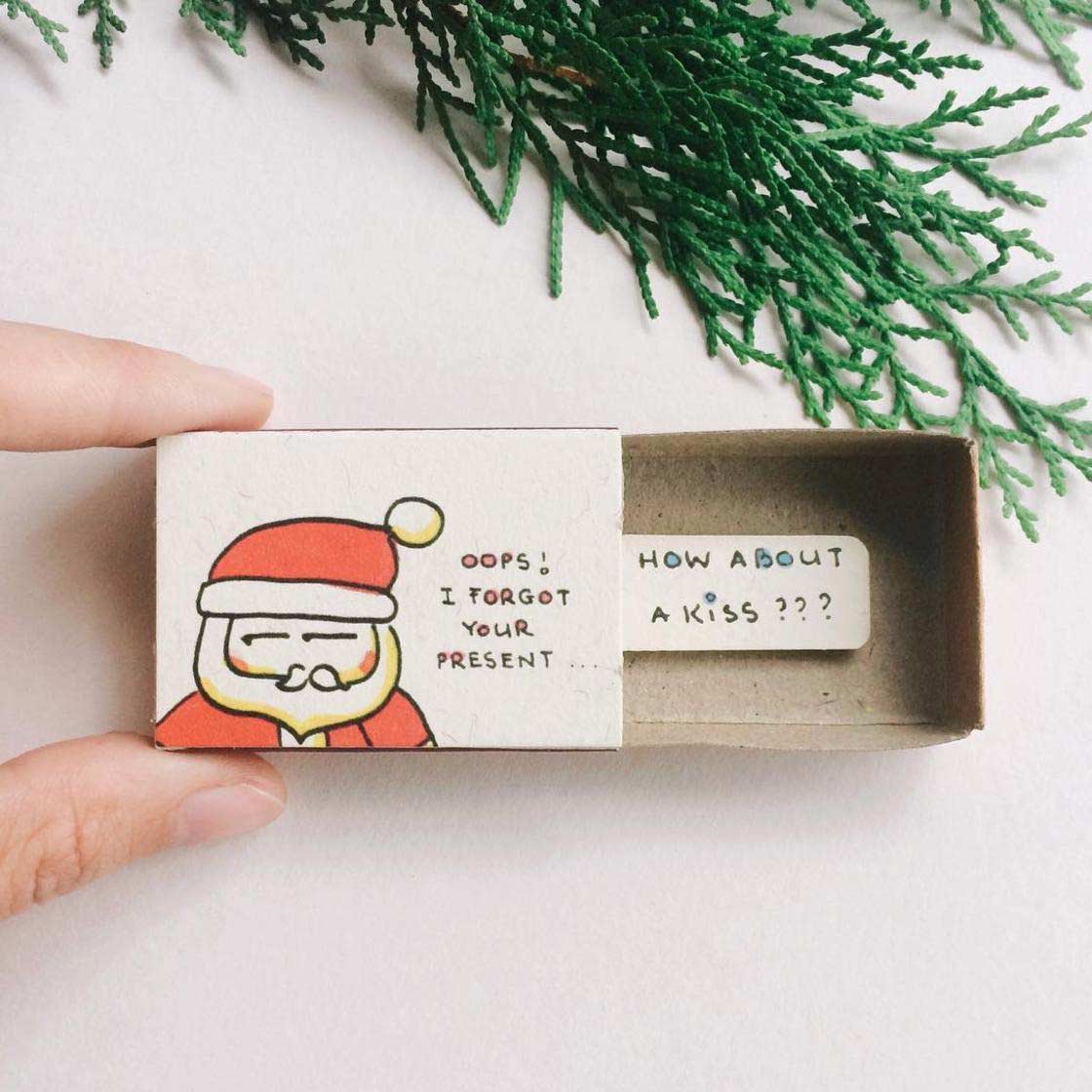 Trang Hoang aus Vietnam erstellt wundervolle kleine Streichholzbotschaften, die sich mit Liebe und Freundschaft beschäftigen. Mir gefallen die vor allem, wenn sie zwischen der zunächst sichtbaren Außenseite und der dann hervorgeschobenen Innenseite kontrastieren und überraschen. Sehr liebe- wie humorvolle Botschaften, dazu sehr schön illustriert.