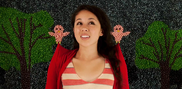 Das Musikvideo zu Kina Grannis‘ Single In Your Arms besteht aus 288.000 Jelly Beans und einer Sängerin. Die Erstellung des Videos hat satte 22 Monate und 1.357 Arbeitsstunden gedauert. Beeindruckend! Hinzu kommt, dass der Song auch nicht unbedingt Ohrkrebsheraufbeschwörend ist.