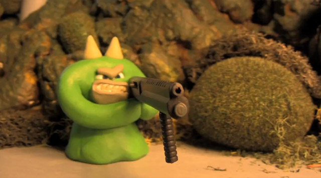 Feiner Stopmotion-Animations-Short von Jack Conte, der ein paar Knet-Alien-Monster mit allerlei Waffen auf diverse Früchte ballern lässt, die ein mechanischer Arm anliefert. Klingt vernünftiger als es ist.