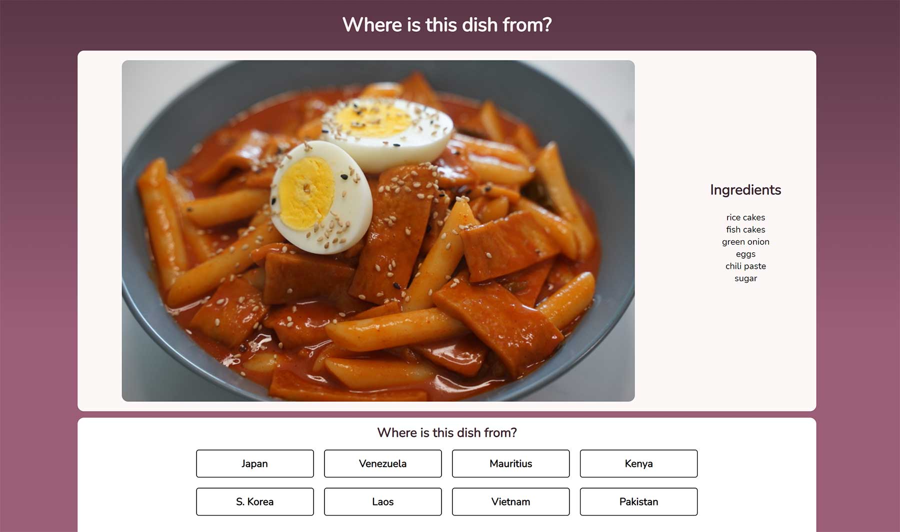 „Where is this dish from?“ lässt euch genau diese Frage in Quiz-Form beantworten: Wo stammt die gezeigte und nach Inhaltsstoffen gelistete Speise traditionell her? Das hätte man meiner Meinung nach zwar noch etwas optimierter umsetzen […]