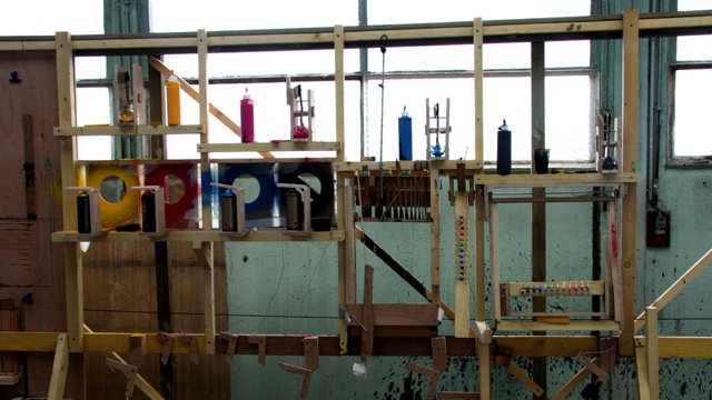 Thomas Bernard und Florian Chevillard haben beim Festival de l’Affiche in Chaumont eine Holzapperatur vorgestellt, die in seiner Sinnlosigkeit enorme Coolness erhält. Mittels reiner Seilspann-Holzkipp-Wasweißichnoch-Technik wird ein Blatt mehr oder weniger automatisch mit Testmustern bemalt. […]
