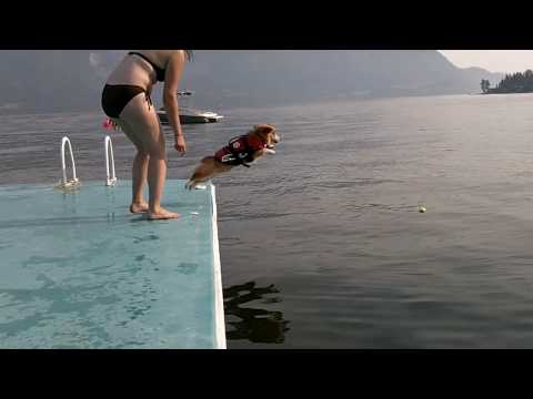 Der kleine Cooper und seine ersten Schwimmversuche. Sehr elegante Eintauchphase. (via)