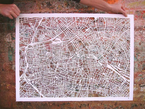 Karen O’Leary schneidet den unnötigen Krims Krams aus Städtekarten um wunderschöne Straßennetzmuster zu erhalten. Hier Berlin, nach dem Sprung andere Metropolen zum selber raten: