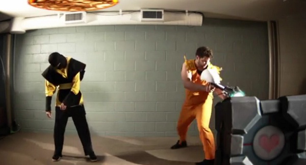 Oh mein Gott, wie kindisch, doof, schmutzig und überflüssig und toll ist das denn bitte? Ein Mashup aus Portal 2 und Mortal Kombat 9 ergibt totalen Schwachsinn und irgendwie auch so etwas wie stumpfe Unterhaltung.