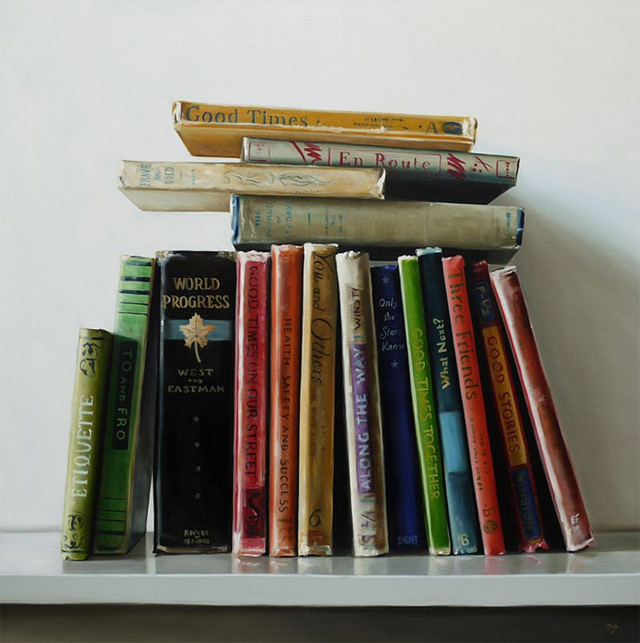 Der kanadische Künstler Christopher Scott malt gerne Ventialatoren und kleinere Bücherstapel, die wie strunzenlangweilige Fotografien daherkommen. Sind aber wie 13 Wörter zuvor beschreiben gemalt. Jaha. Und dadurch total aufregend. Jetzt kommt ihr!