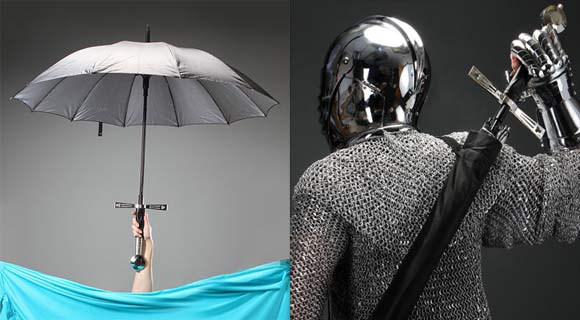 Wie cool ist das denn? Regen, nimm DAS! Den stylischen Schwertschirm gibts bei Thinkgeek für 40 Dollar.