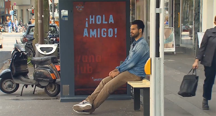 Im Rahmen der Aktion #spontanero wurden Wartende an einer Bushaltestelle von einem interaktiven Plakat angesprochen. Wie spontan sind die Leute? Die Nachberin umarmen, Hula-Hoop tanzen oder in einen Partybus einsteigen, wenn man doch gerade gelangweilt auf den nächsten Bus zur Schwiegermutti wartet? Gelungene Überraschung.