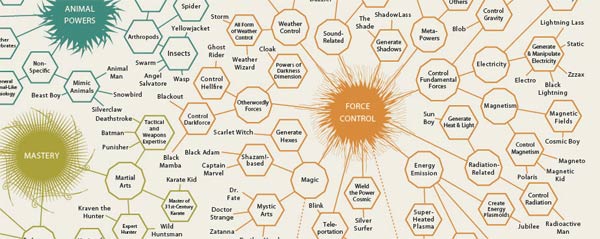 The Illustrious Omnibus of Superpowers vom Pop Chart Lab zeigt uns einen Stammbaum der Superkräfte und lässt uns Radioactive Man, Hulk, Iron Man und Co. wunderbar nebeneinander anordnen.