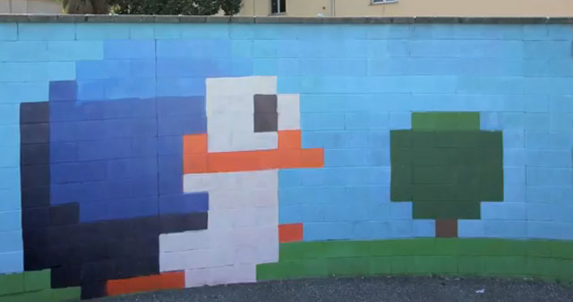 Im italienischen Lecco hat Streetartist Pao eine kurz(weilig)e 8-Bit-Animation auf eine Wand gezaubert. Ein gemaltes Stück Stopmotion in Videospiel-Optik. Sweet!