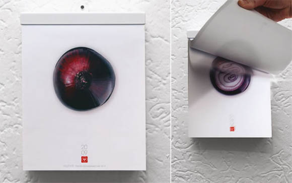 Die Werbeagentur Serviceplan hat diesen pfiggigen Kalender erstellt, der auf 365 Tagen für 2010 eine Zwiebel zeigt, die von Tag zu Tag weiter durchschritten wird. Crazy. (via)