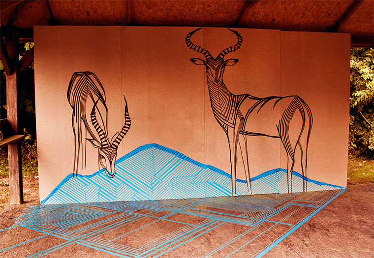 Ich freue mich immer wieder, wenn Künstler sich bei mir melden. So geschehen bei den Jungs und Mädels von TAPE OVER aus Berlin, die mir eine Mail geschickt haben, um sich vorzustellen. Das Portfolio hat mich überzeugt, also leiste ich gerne Folge und stell euch die Crew vor. Motive, die durchaus komplex für den „Werkstoff“ Tape sind und nicht nur mit gezackten Verläufen sondern auch jeder Menge flüssiger Konturen und vor allem originellen Ideen daher kommen.
