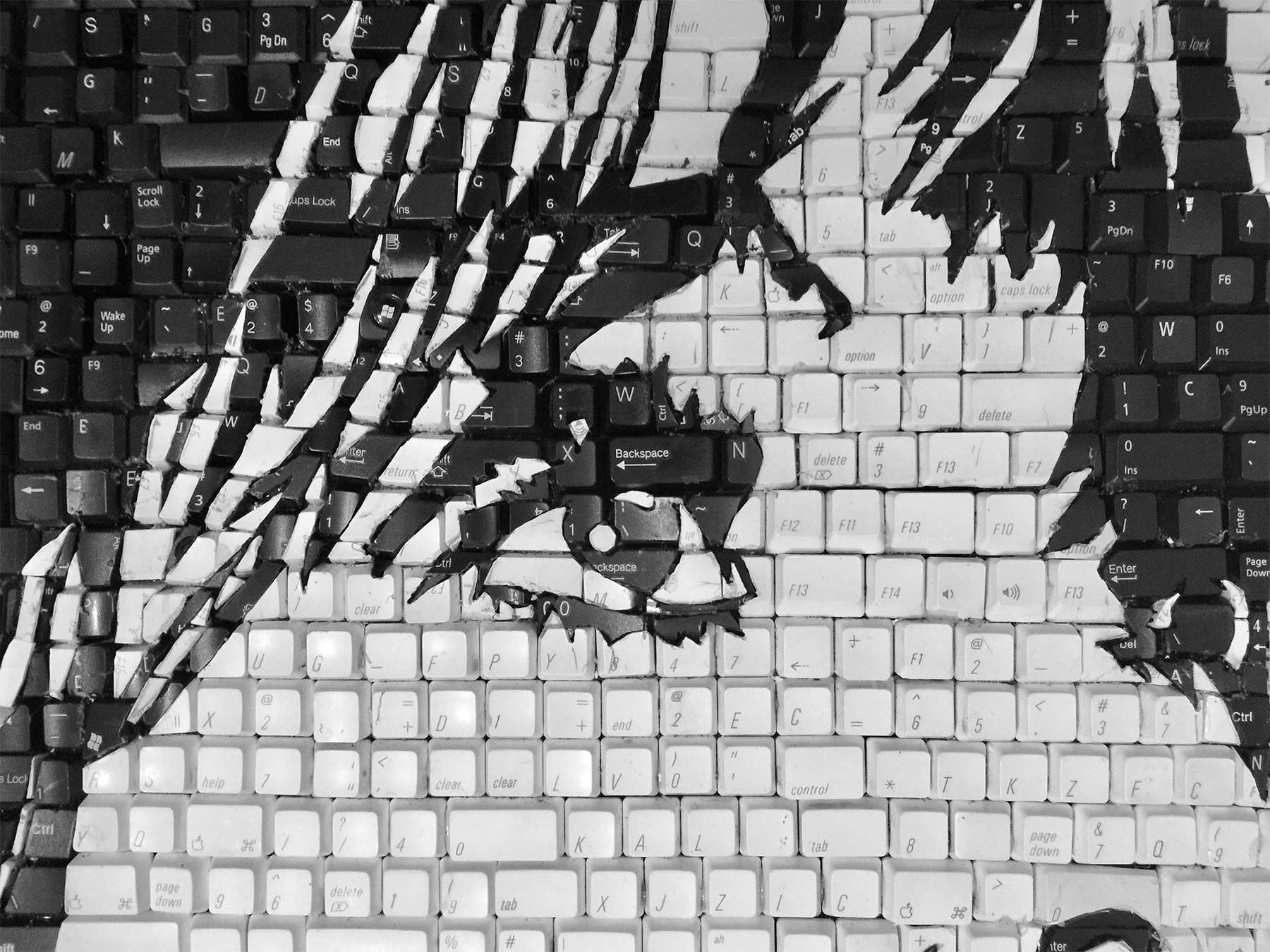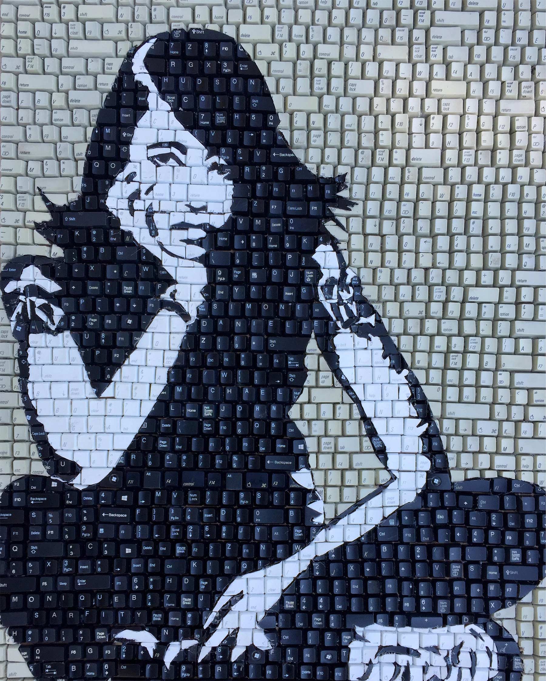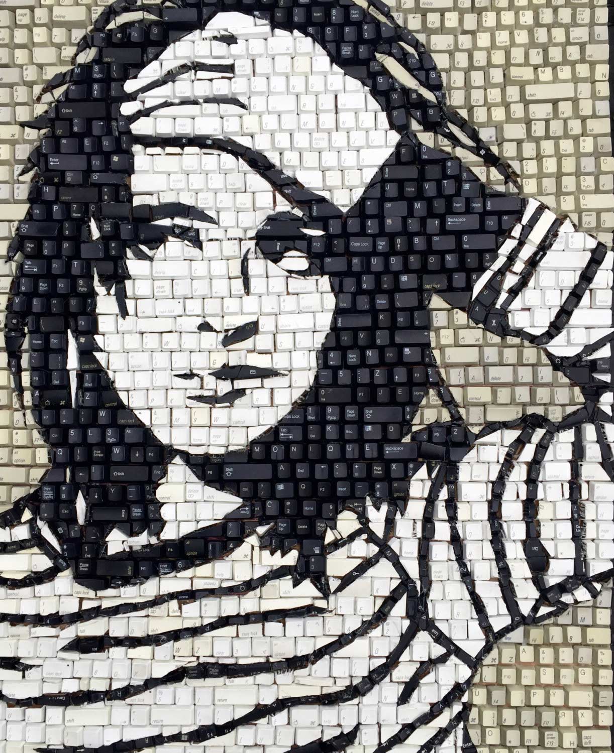 Vor Kurzem hatte ich noch die Essens-Tastatur-Tasten hier im Blog, jetzt geht es um die künstlerische Verwendung der klassischen Keycaps. Da ist Monique Sarfity sicher nicht die Erste, die diese Plastiksteinchen als pixelartige Grundlage für das Setzen von Mosaiks benutzt, aber die Künstlerin aus New Jersey hat eine gute Technik drauf und bietet außerdem Auftragsarbeiten über Etsy an. Solltet ihr euer Gesicht oder das einer anderen Person also mal aus lauter Tasten gesetzt haben wollen – haut sie an! Günstig dürfte das jedoch nicht unbedingt werden, ihre eigenen Kunstwerke stehen teils für über 2.000 Euro zum Verkauf…