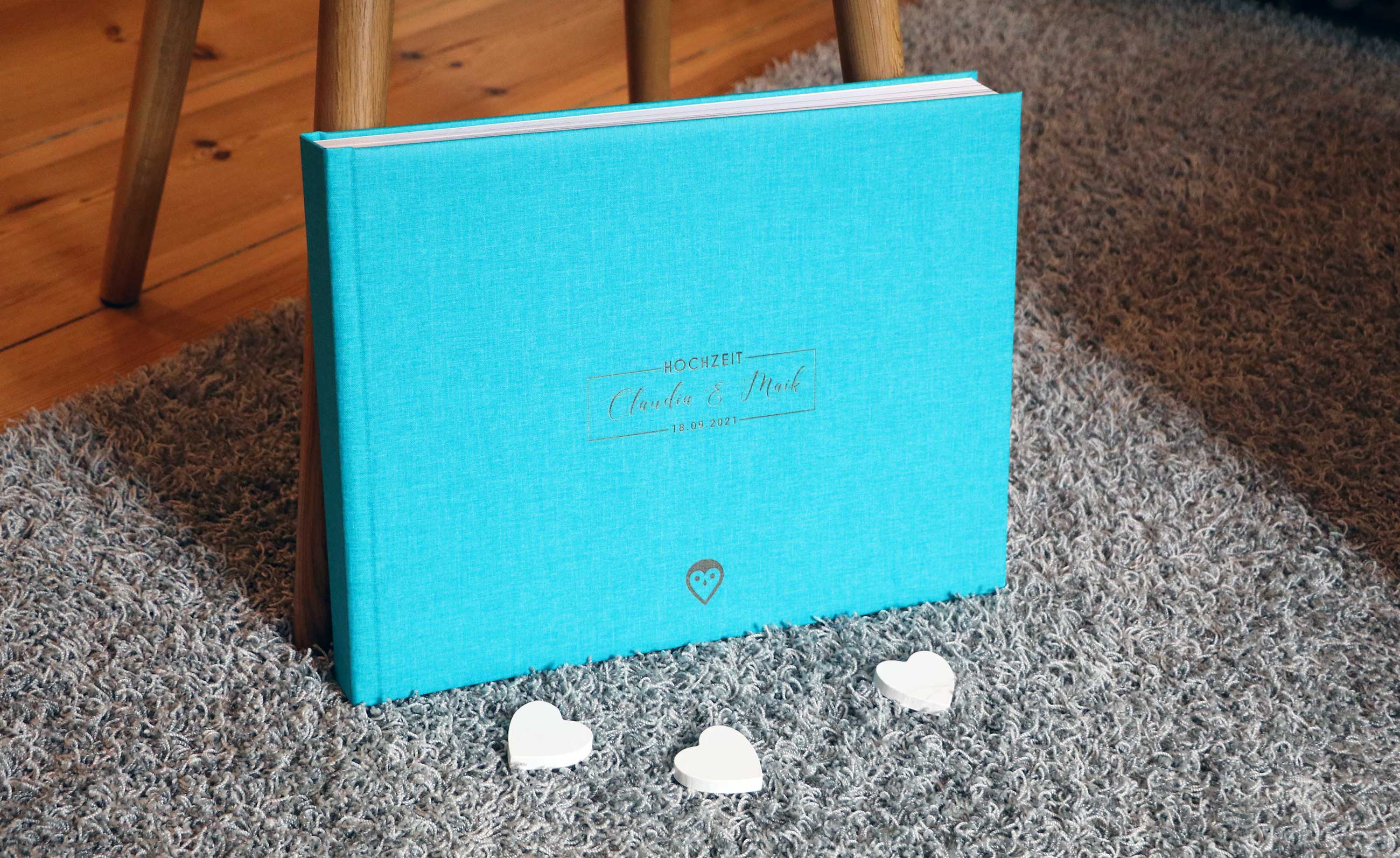 Beim Bestellprozess fand ich smart, dass man auch direkt ein paar „Elternkopien“ des Hochzeitsfotobuchs mitbestellen kann. Das sind in der Regel kleinere Varianten des eigenen Buchdesigns. Wir durften für diesen Test ein Premiumalbum ordern, das mit besonders dickem Fotopapier ausgestattet ist, die kleineren Kopien hätten dann deutlich weniger gekostet. Eine schöne Idee, um als kleines Geschenk für Eltern oder Trauzeugende direkt Erinnerungen weiter zu reichen. Außerdem fand ich gut, dass man nach der Bestellung einen Link erhält, mit dem man die digitale Version des Fotoalbums mit Familie und Freunden teilen kann.
