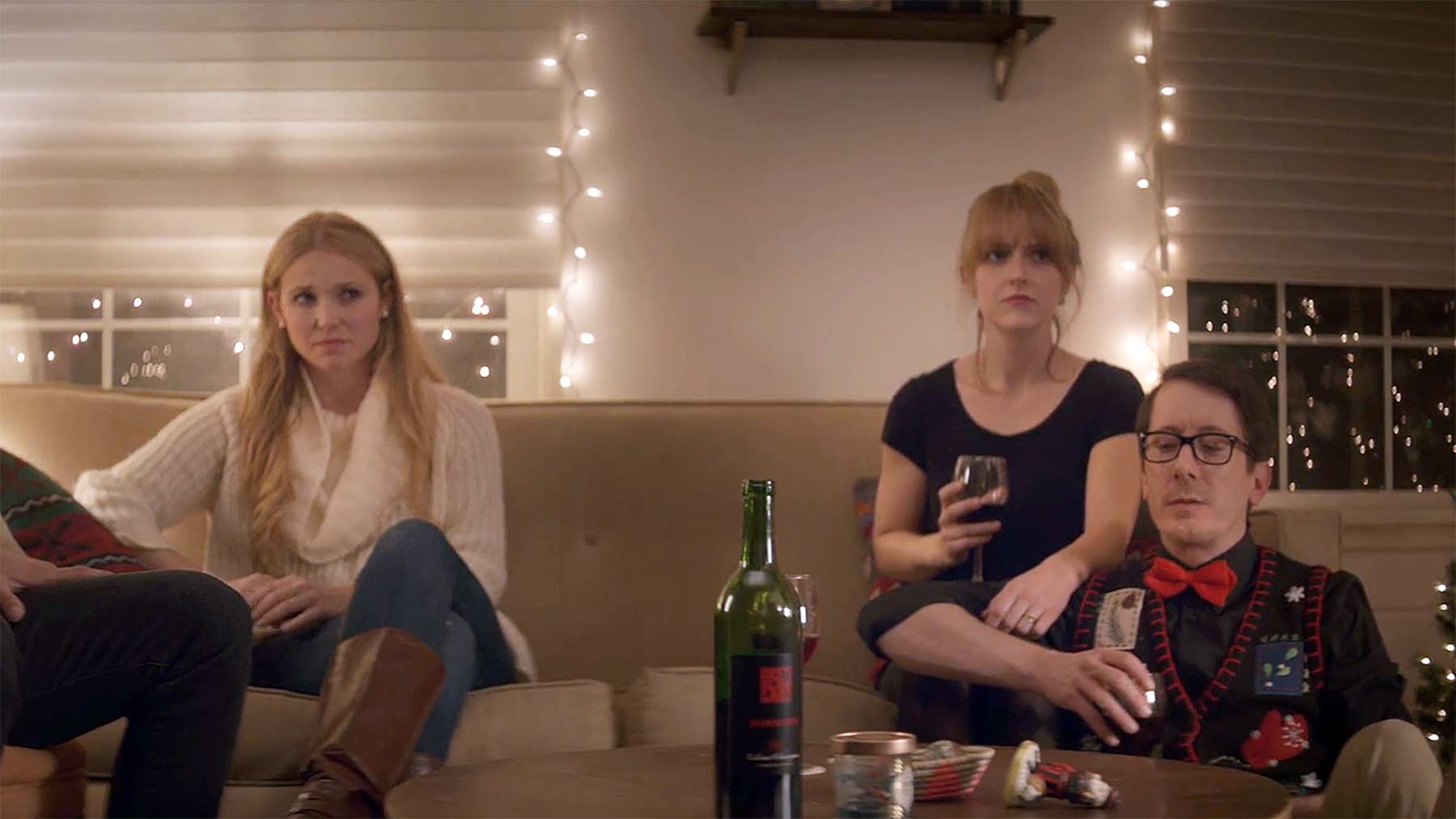 „Old friends reunite for a Christmas dinner party, but a playful fight about country music turns ugly when a dog’s death gets involved.“