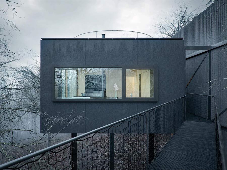 Die in Ithaca (US-Bundesstaat New York) liegende 55 Quadratmeter-Bude wurde übrigens von der Architektengruppe WOJR erdacht und erbaut. Als kleiner Rückzugsort im Wald oder Zwischenstopp beim Wandern doch eine durchaus schicke Lösung, oder nicht?