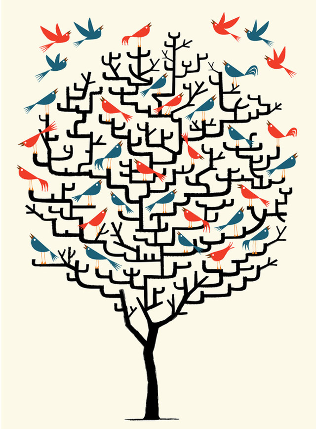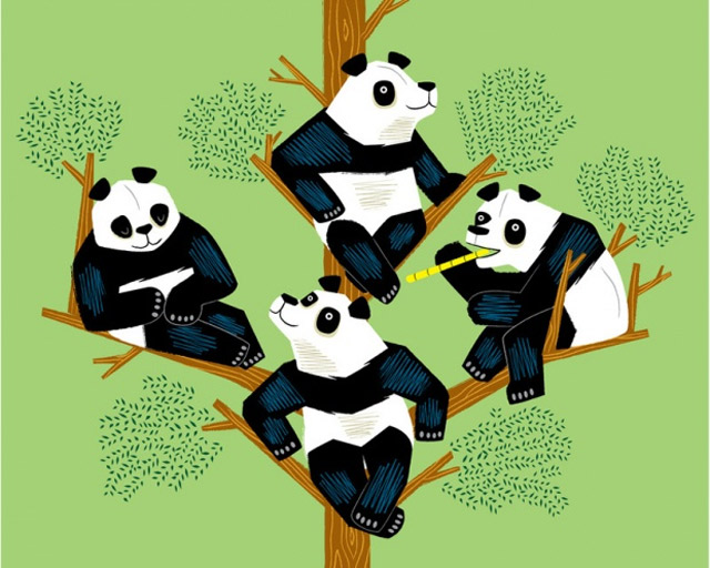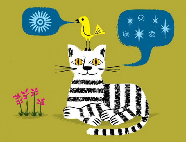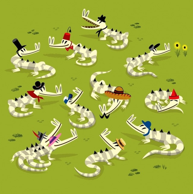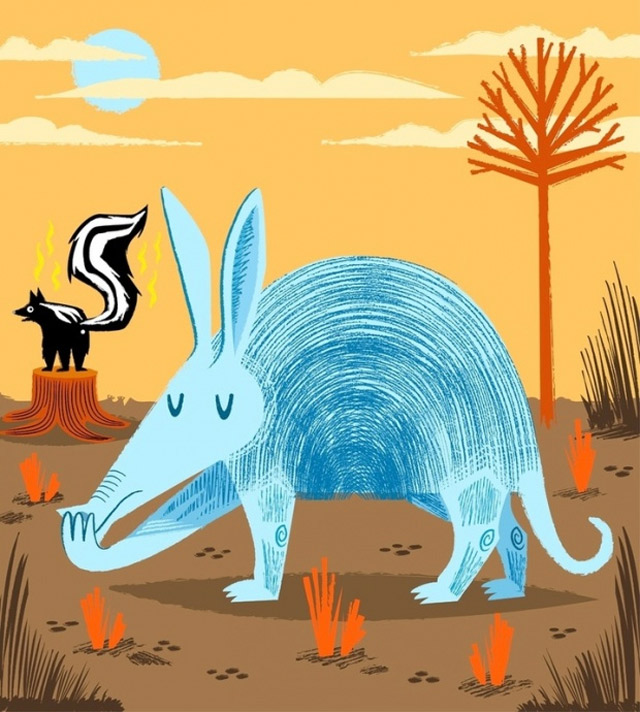 Schöne Illustrationen von Oliver Lake aus Oxford. Sehr eigener Stil, der irgendwo zwischen hölzern und kindlich liegt und doch eine angenehme Konstanz und eine Prise Humor besitzt. Mal was Anderes!