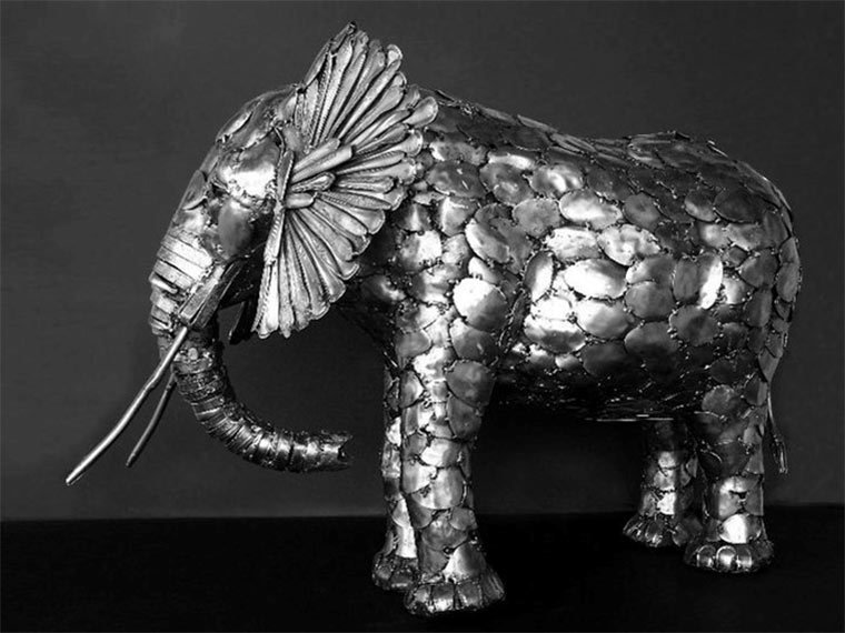 Vor einer Weile hatte ich euch die beeindruckende metallerne Löwenskulptur von Selçuk Yılmaz gezeigt. Die Arbeiten von Gary Hovey aus Ohio gehen in eine ganz ähnliche Richtung. Es sind ebenso Tierskulpturen aus metallernen Gegenständen. Nur eben etwas kleiner. Die Tiere bestehen fast ausschließlich aus Besteck. Gabeln, Messer und Löffel sind gekonnt verarbeitet worden, so dass teils erstaunlich detailreiche Tiere entstehen.