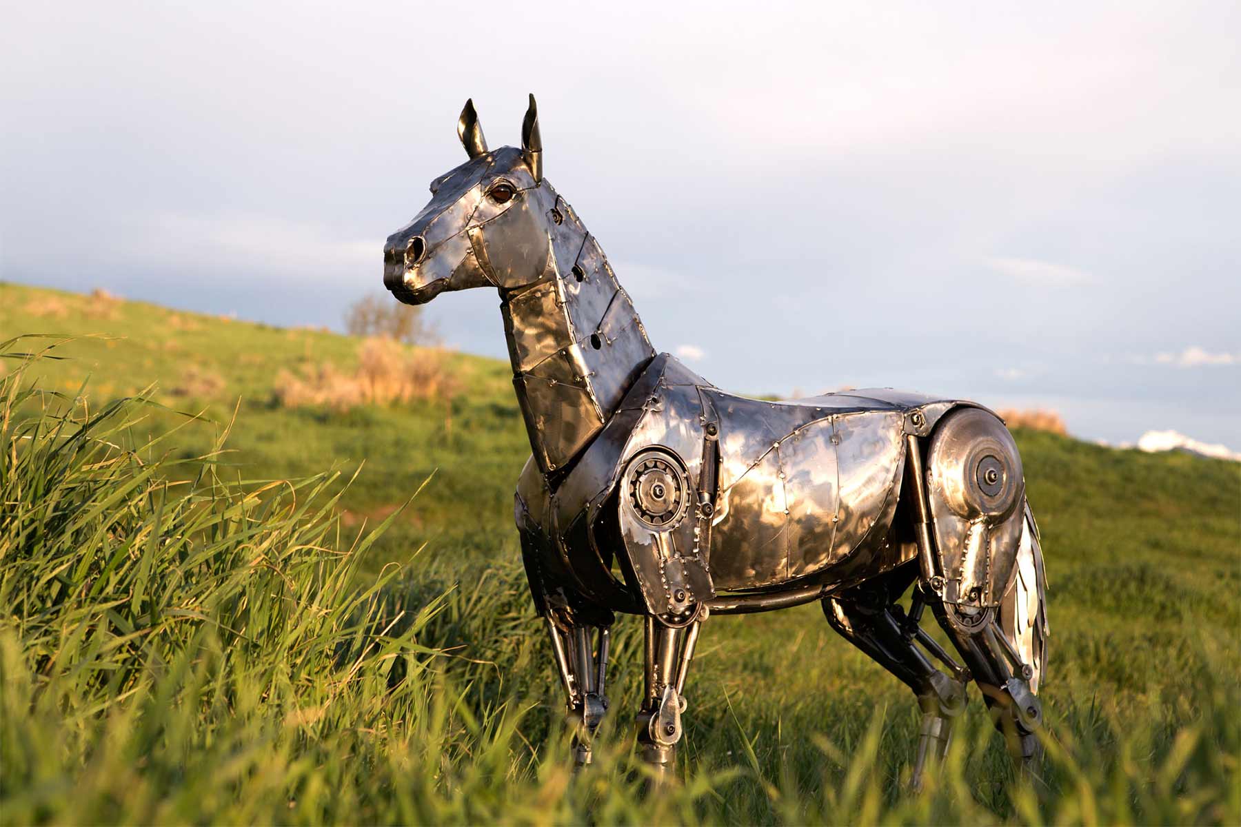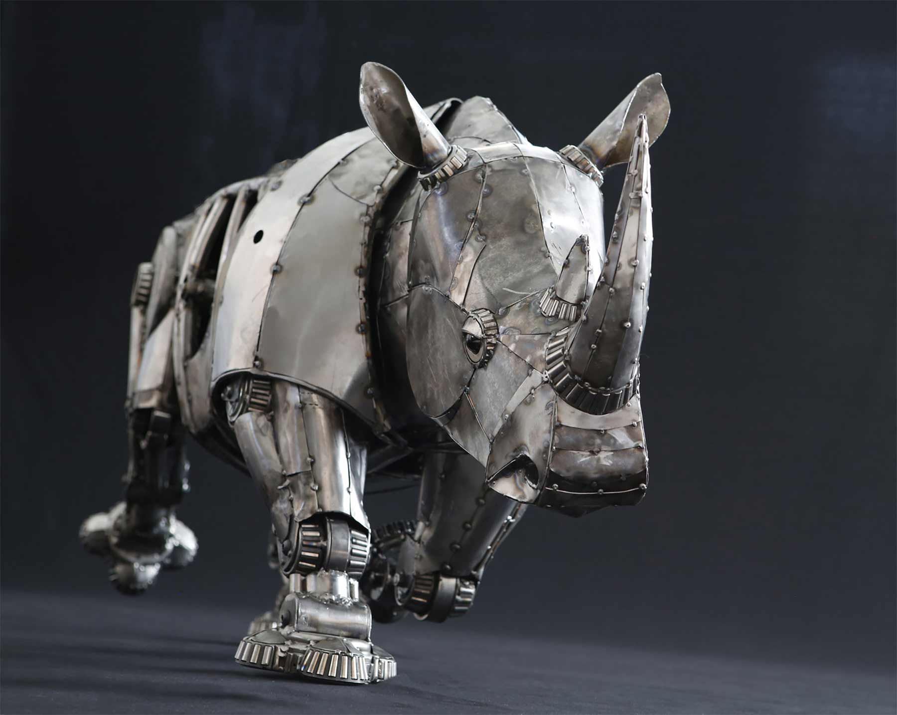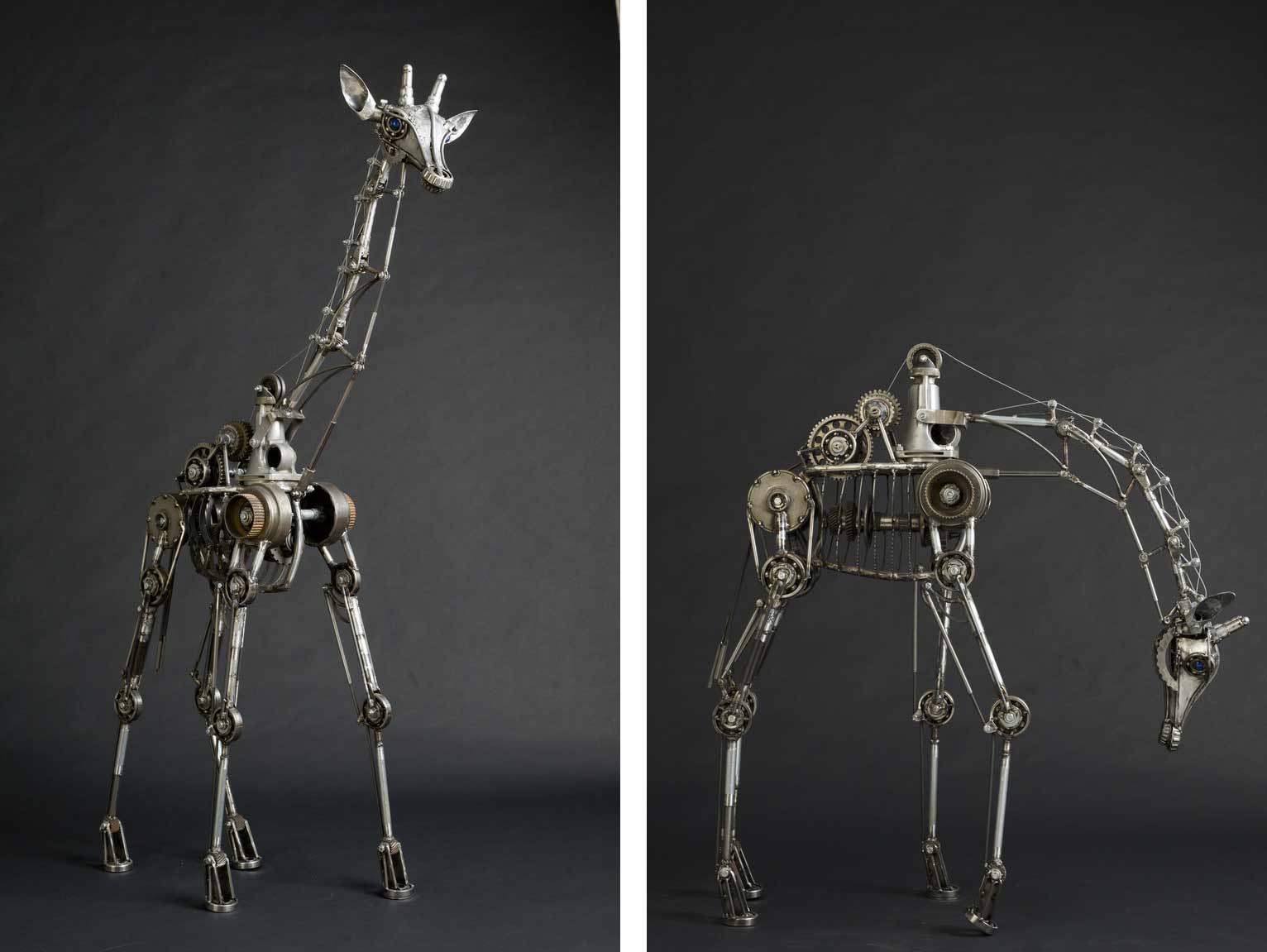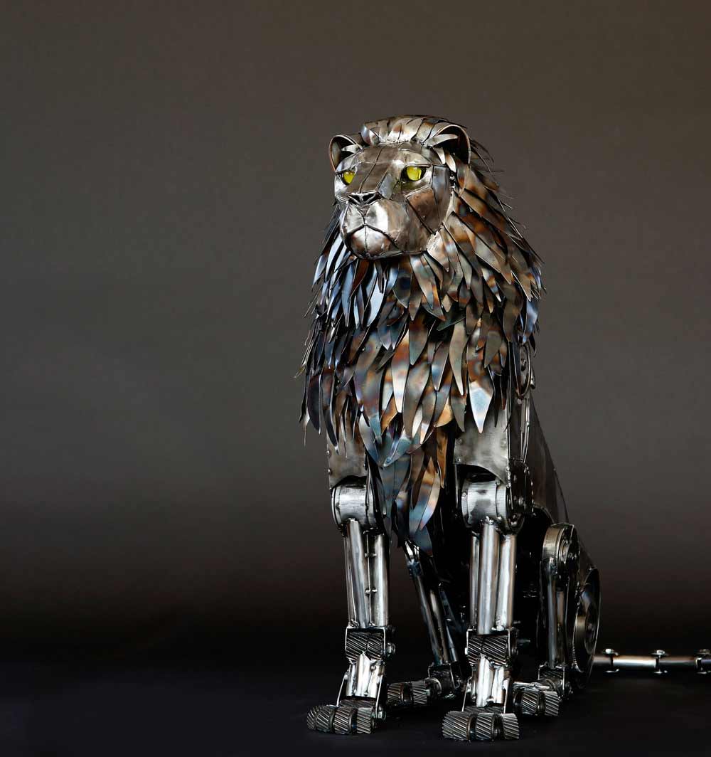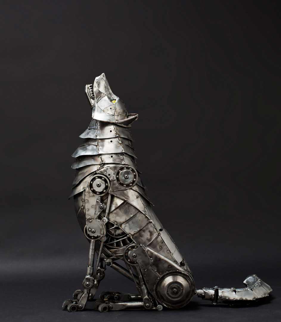 Der amerikanische Künstler Andrew Chase ist eigentlich Fotograf. Für sein Studio wollte er so geil handgemachte Metall-Barhocker haben, aber die Designerstücke waren dann doch zu teuer. Also hat er sich kurzerhand selbst welche gemacht. Weiteres Mobiliar folgte, was seiner Meinung nach nicht perfekt war, aber Charakter hatte. Seine Kunden jedenfalls liebten die Stücke und nach und nach haben Agenturen die geschweißten Modelle haben wollen. Irgendwann ist Chase dann auf das Tier gekommen und hat begonnen, Skulpturen zu bauen. Die schweren Metall-Arbeiten sind so schon beeindruckend toll geraten, aber sie lassen sich sogar noch bewegen! So sind erstaunlich natürlich anmutende Posen für Wolf, Elefant, Gorilla und Co. möglich. Also, beim Tyrannosaurus Rex gehe ich jetzt einfach mal davon aus, dass das einigermaßen natürliche Bewegungen sind…