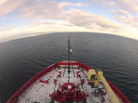 Zwei Monate lang war Cassandra Brooks auf der Nathaniel B. Palmer, einem Eisbrecher, in der Antarktis unterwegs. In einer 5 minütigen Timelapse-Montage zeigt sie uns imposante Aufnahmen, vor allem, wenn der Brecher selbst mehrmals Anlauf nimmt um eine Blockade zu lösen. Am Ende werden wir dann sogar mit Robben belohnt!