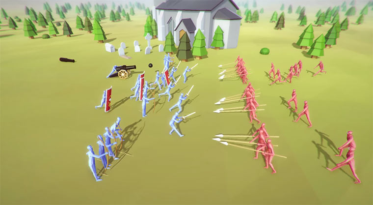 Schluss mit langweiligen Simulationen im Grau-grau-Look – der Totally Accurate Battle Simulator kommt mit knallbunter Gummi-Optik und jeder Menge Wahnsinn daher. Denn eigentlich laufen die bewaffneten und in Stellung gesetzten Figuren einfach nur unbeholfen aufeinander zu, beschwören eine Hühner-Kampfarmader oder legen sich ungelenk schlafen. Am Ende ist es mehr Glück als akkurate Schlacht-Taktik, wer gewinnt. Schaut vielversprechend dämlich aus!