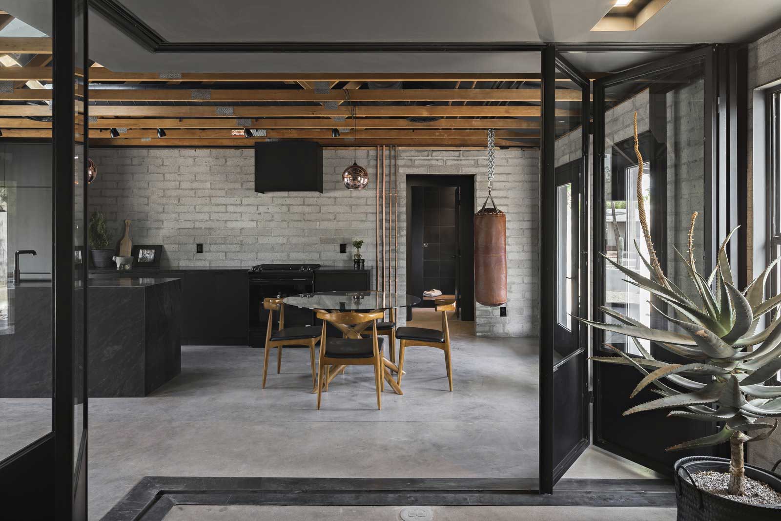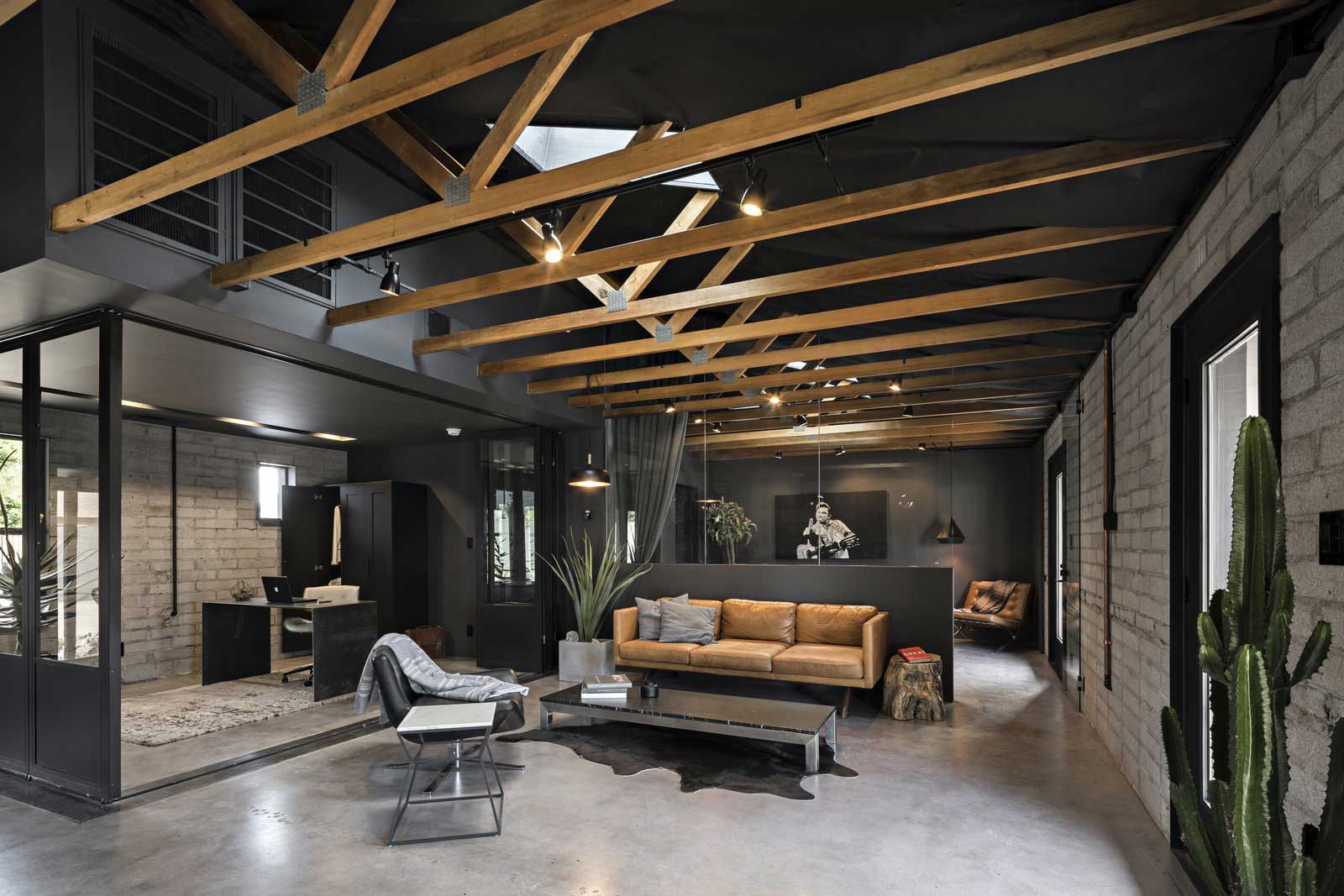 Wenn ich mir eine Wohnung erträumen könnte, läge „The Black House“ dem Ideal schon verdammt nahe. Vielleicht nicht mit jedem einzelnen Einrichtungsgegenstand, aber die allgemeine Mischung aus edler schwarzer Wandfarbe und den brachialen Holzbalken unter der Decke, ist schon genial! Die in der Nähe der „Arizona State University“ liegende Location ist ein modernes Loft, das minimalistisch eingerichtet Platz für viel Entfaltung und Design lässt. Konzepiert und umgesetzt wurde „The Black House“ von Knob Modern Design.