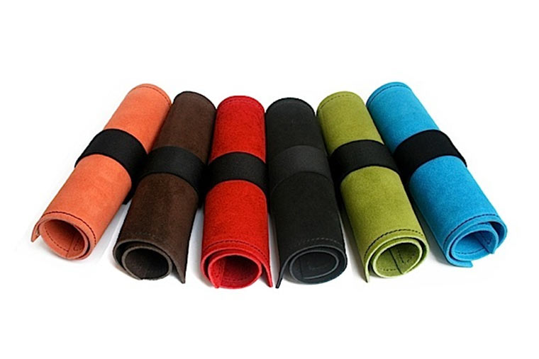 Lina Maria Valdés Cano aus Darmstadt hat DeValdes gegründet und designt die Produkte selbst mit. Star der Produktpallette sind dabei die Tubos, das sind elegante Aufbewahrungsrollen für Schreibutensilien aus Wildleder. Stylische Farben, teils mit zweiter Ledersorte veredelt und mit elegantem Verschluss. Ideal für unterwegs.