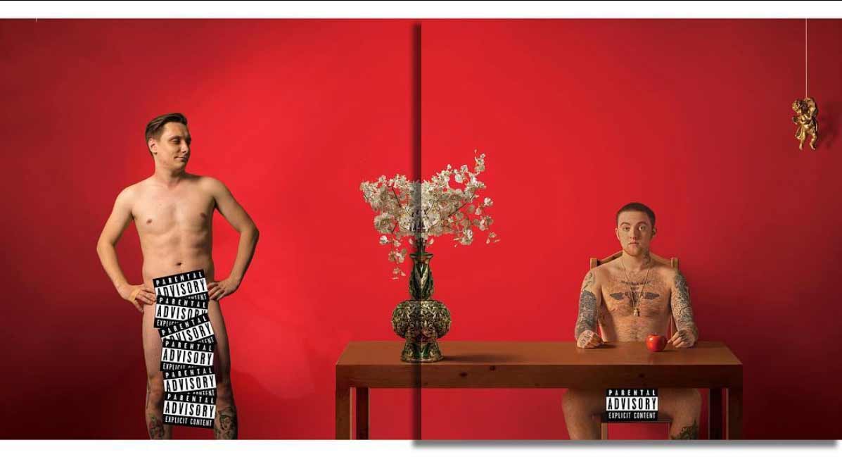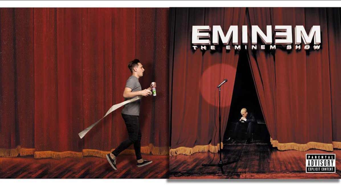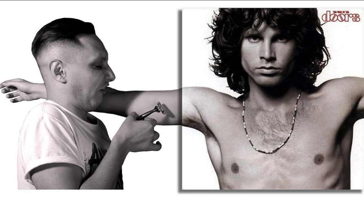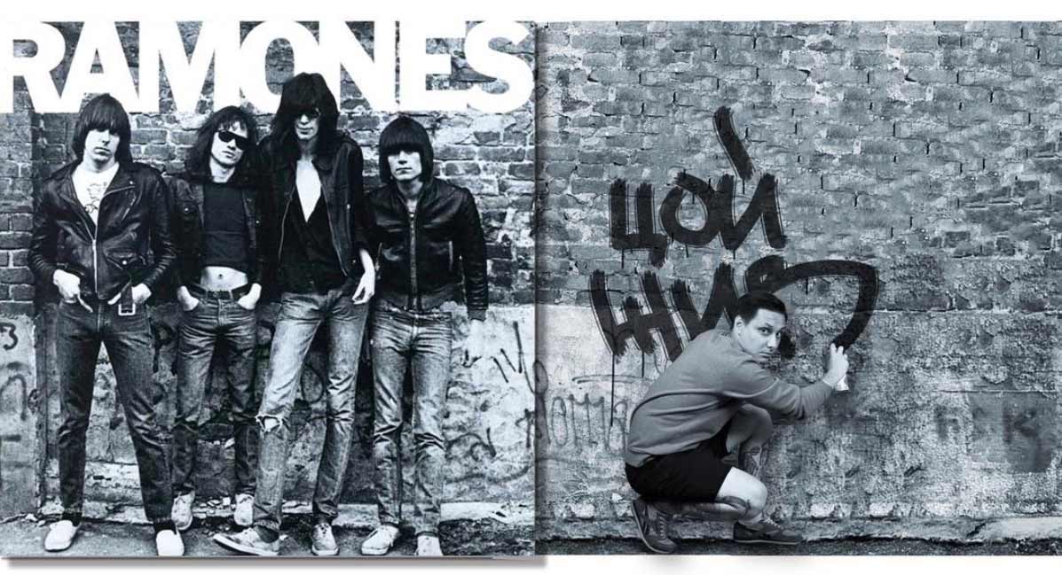 Ähnliches hatte ich 2014 mal mit den herausgezoomten Albumcovern hier im Blog. Igor Lipchanskiy beschränkt sich jedoch auf die Erweiterung ikonischer Plattenmotive in genau eine Richtung. Und so gibt es statt handelsüblichem Quadrat eben ein Rechteck im 2:1-Format, das uns mal rechts mal links gelagert einen Blick hinter die vermeintlichen Musikkulissen zeigt und hergibt, was Igor selbst mit dem Motiv zu tun hatte. Mit jeder Menge Augenzwinkern, versteht sich.