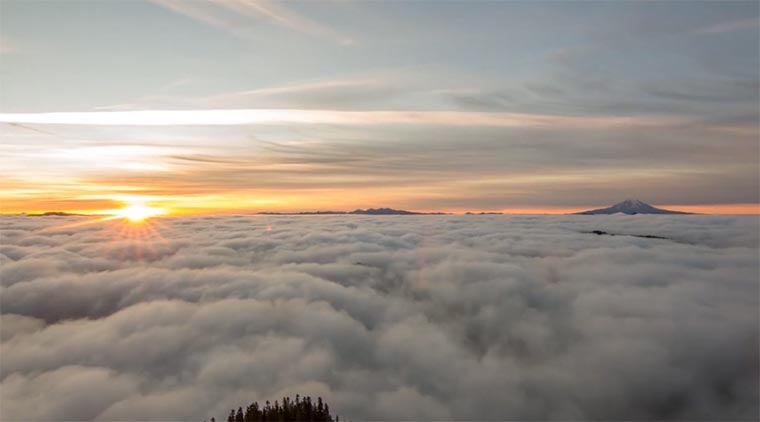 Einen traumhaften Anblick durfte Donald Jensen nach einigen Anläufen und Wetterumschwüngen endlich am High Rock Lookout in den Bergen Washingtons genießen. Ein Meer aus Wolken. Geniale Sache, vor allem, wenn man derart frei davor steht und nicht durch Fensterscheibenglas in Flugzeugen oder Hochhäusern davon getrennt wird.