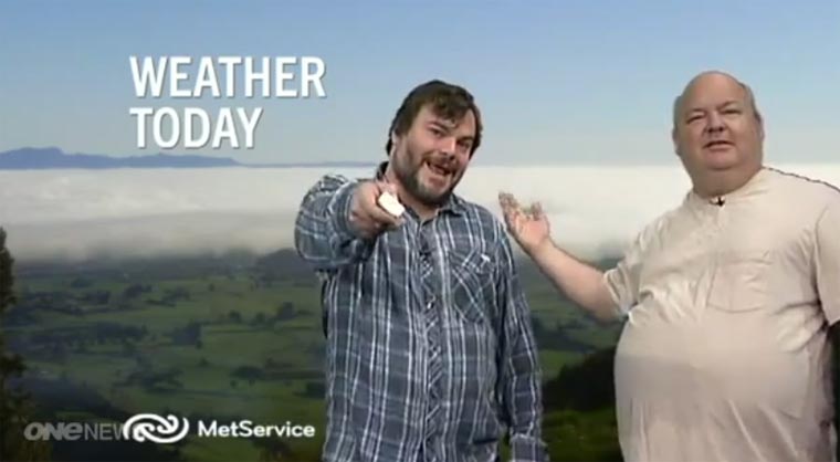 Sonst interessiere ich mich ja eher begrenzt für das Wetter in Neuseeland. Wenn allerdings Jack Black und Kyle Butler alias Tenascious D die Wetterband mimen, kann man sich das schon einmal anschauen…