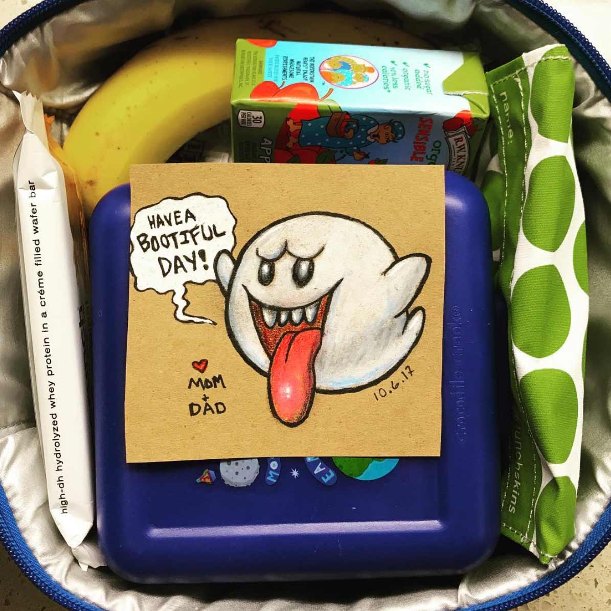 „My sweet little guy is growing up and just started Kindergarten. When I was in grade school, my Mom would always write me notes in my lunchbox. I wanted to carry on that tradition to my kids and give them notes with my own creative spin. Here are the first 10 days of school. As you can tell, my son loves Mario!“