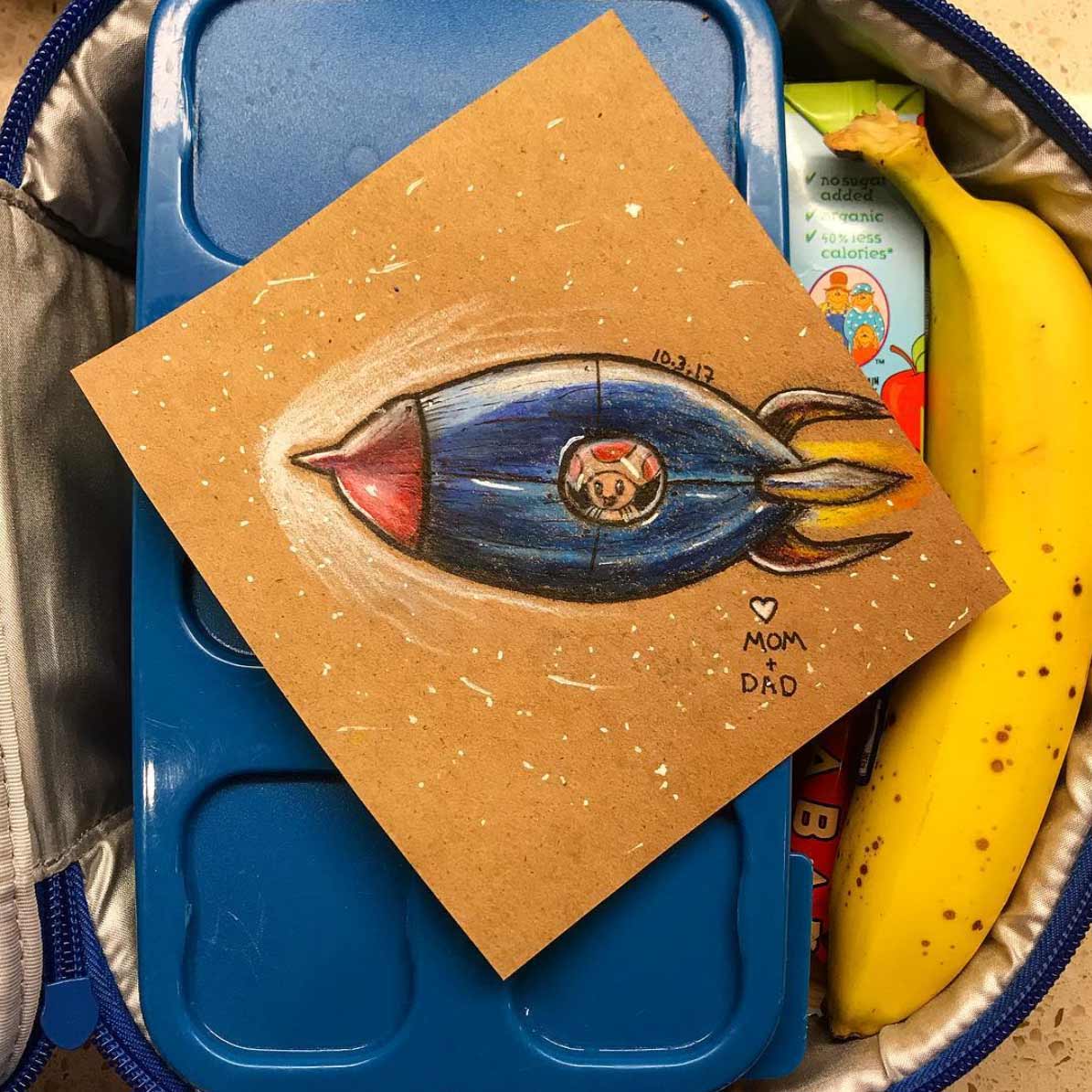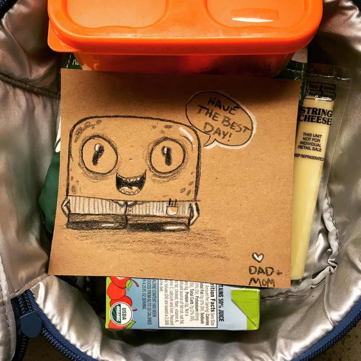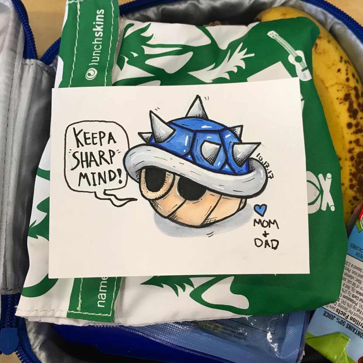 Ein schön anzuschauendes Motiv, das einem aufmunternde Worte mit auf den Weg gibt – wer mag das nicht? Andre Guerra versorgt seine Tochter täglich mit einer solchen liebevollen Kreativität, zumindest, seitdem und wenn sie in den Kindergarten geht. Mal schauen, ob er das bis zum High School-Abschluss durchhält…