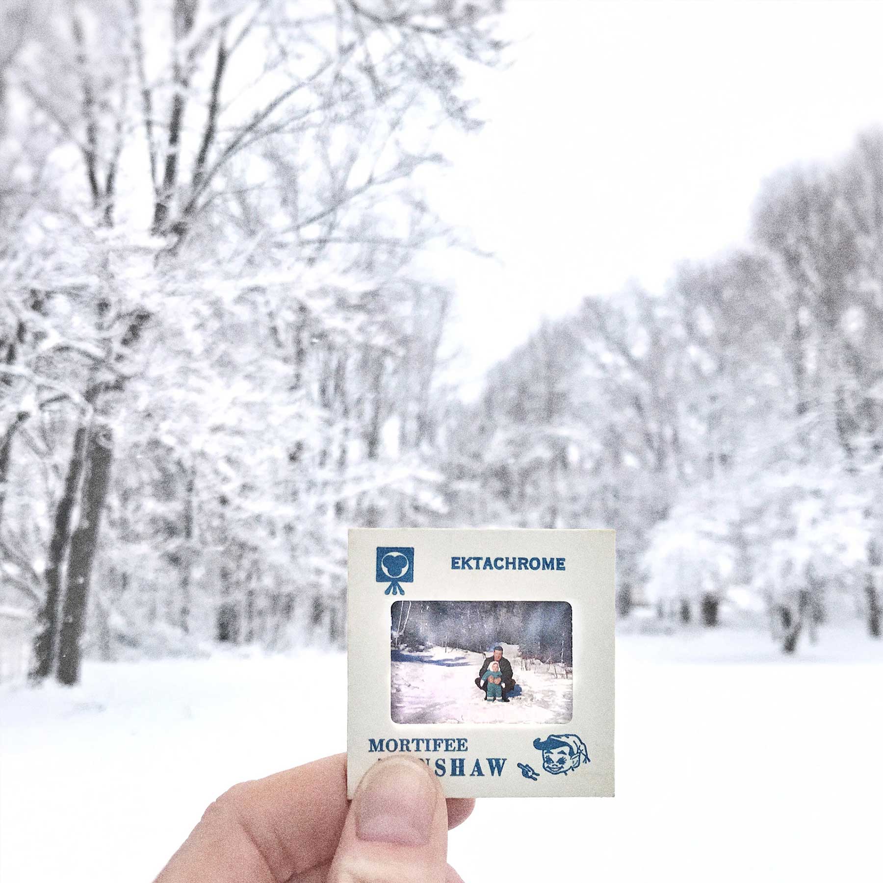 Die amerikanische Fotografin Catherine Panebianco kam jedenfalls Jahr für Jahr zu Weihnachten in den Genuss solcher Dia-Shows, wenn ihr Vater mit Boxen daher kam, die Fotos aus seiner Jugend zeigten. Irgendwann kam ihr die Idee, die Momente von Damals im Setting von heute zu integrieren. „No Memory Is Ever Alone“ heißt die Reihe, bei der sie die originalen Schauplätze aufzufinden versucht hat, um die vergangenen Bildausschnitte entsprechend einzubinden. Tolle Serie!