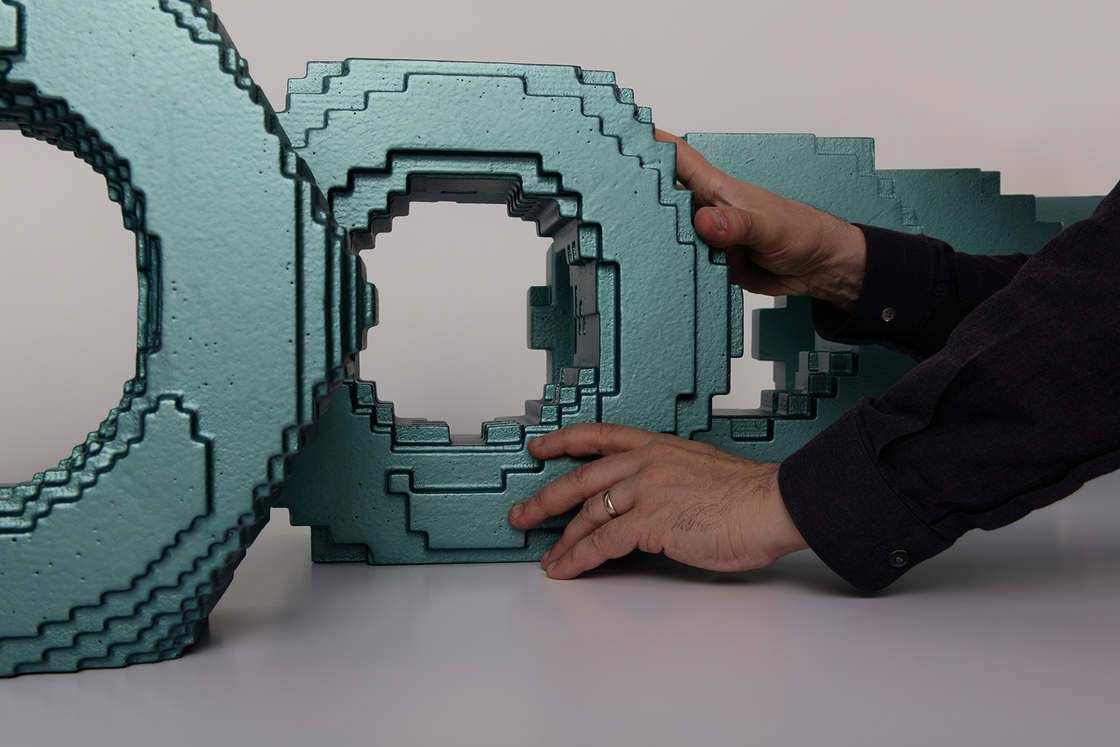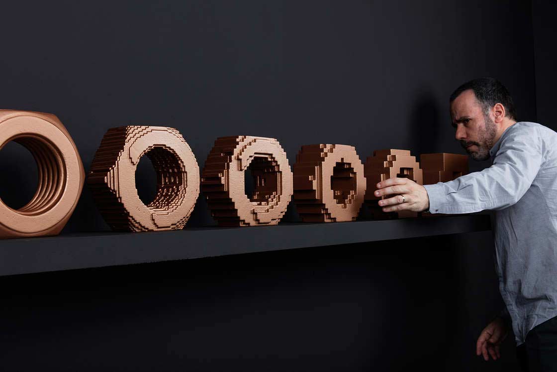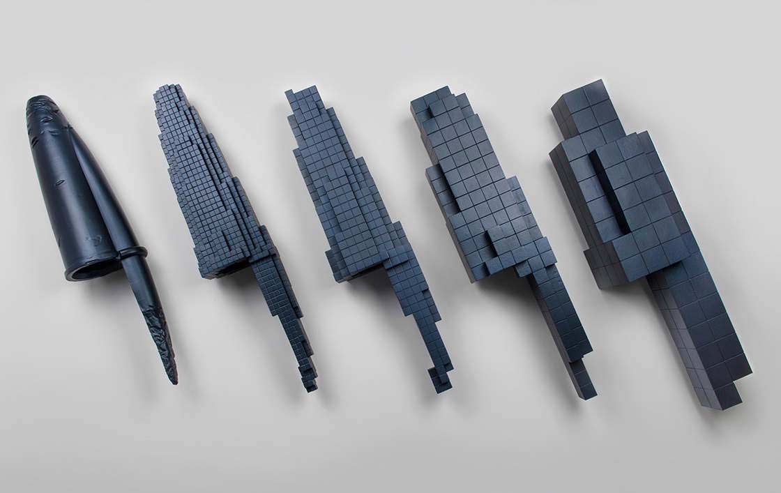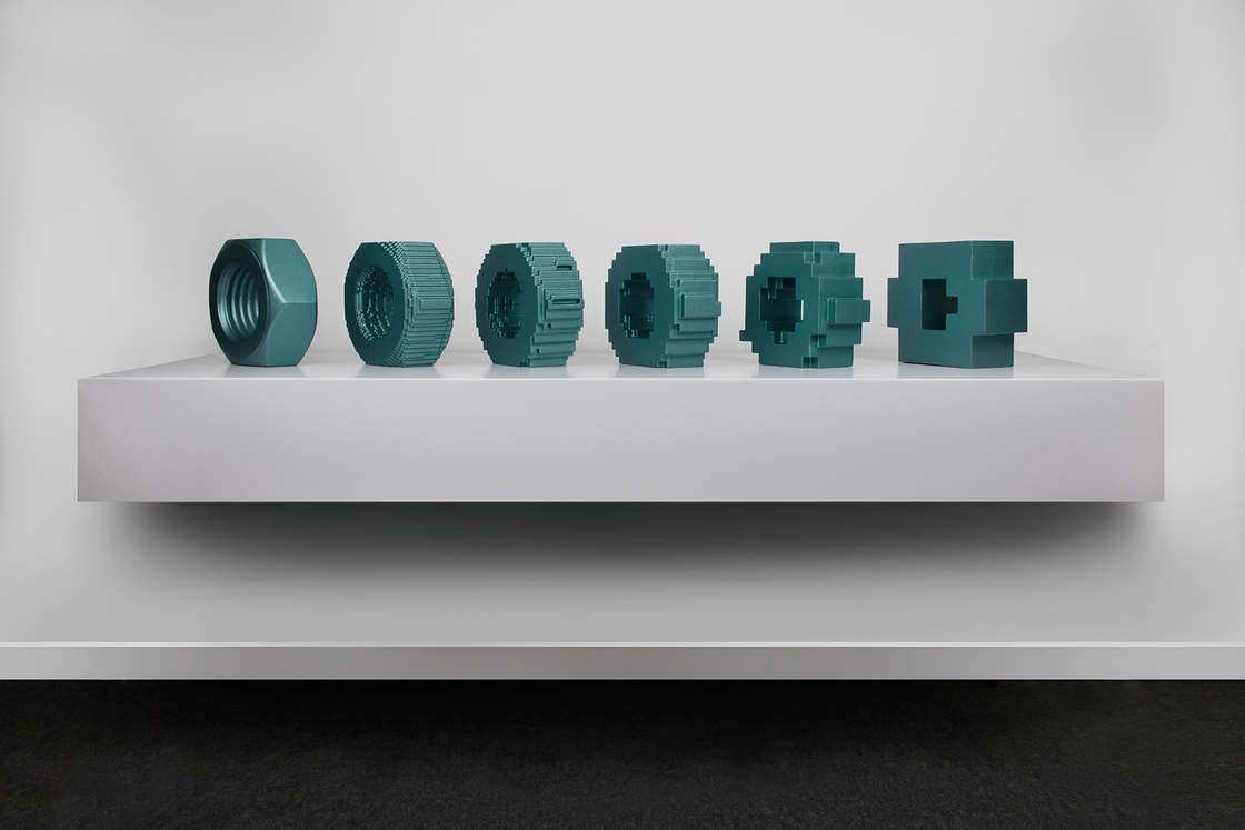 Wer Pixel mag, wird die Arbeiten von Romulo Celdran lieben. Der Madrilene erstellt nicht einfach nur verpixelte Skulpturen von Alltagsgegenständen, er zeigt uns auch gleich noch einige Zwischenstufen. So bietet „HI-RES“ stets das Original und eine Hand voll weniger bis stärker verpixelte Variationen davon. Alles in Form überdimensionaler Skulpturen. Gefällt mir sehr!