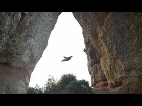 Alexander Polli ist ein wahrer Adrenalinjunkie. Es reicht ihm nicht etwa, mit 250 Sachen durch die Luft zu fliegen, ebenso nicht, das möglichst knapp über dem Boden/Fels zu machen, nein, er möchte unbedingt durch einen kleinen Einlass in der so genannten „Batman Cave“ fliegen. Ja, das hier auf dem Bild. Oha, das nenne ich mal extrem!
