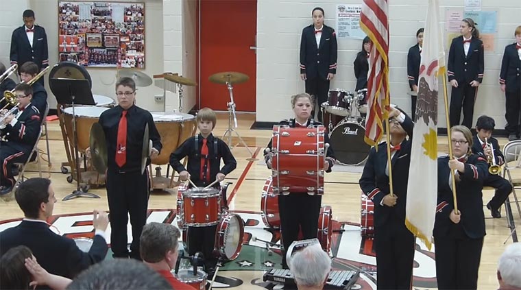 Kaum gewinnen sie mal 4:3 gegen unsere D-Elf im Fußball, schon gewinnen die Amerikaner noch mehr an Größenwahn und lassen Kinder ihre Nationalhymne spielen. Und das, obwohl die Sterne und Strippen ungefähr das heiligste nach Kim Kardashian im Land der begrenzten Freiheiten sein dürfte. Hier jedenfalls haben wir einen Knaben, der nicht nur perfekt Becken spielen kann, sondern den Grundpatriotismus mit der Muttermilch aufgesogen zu haben scheint. Prachtexemplar und sicherlich später Gouverneur oder so.