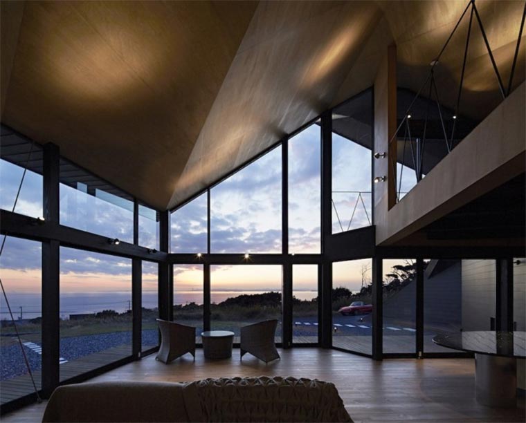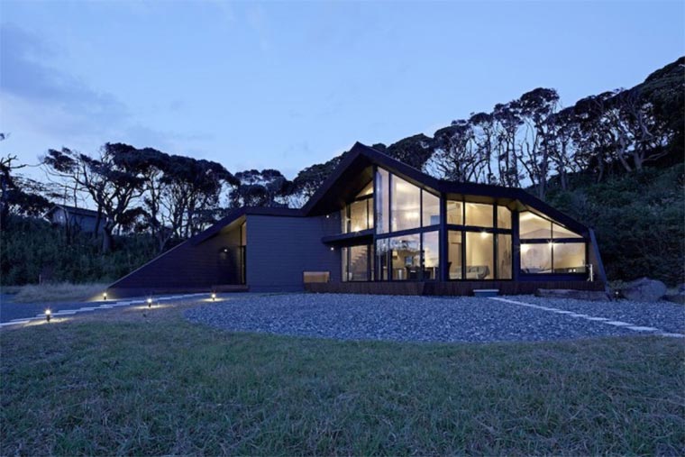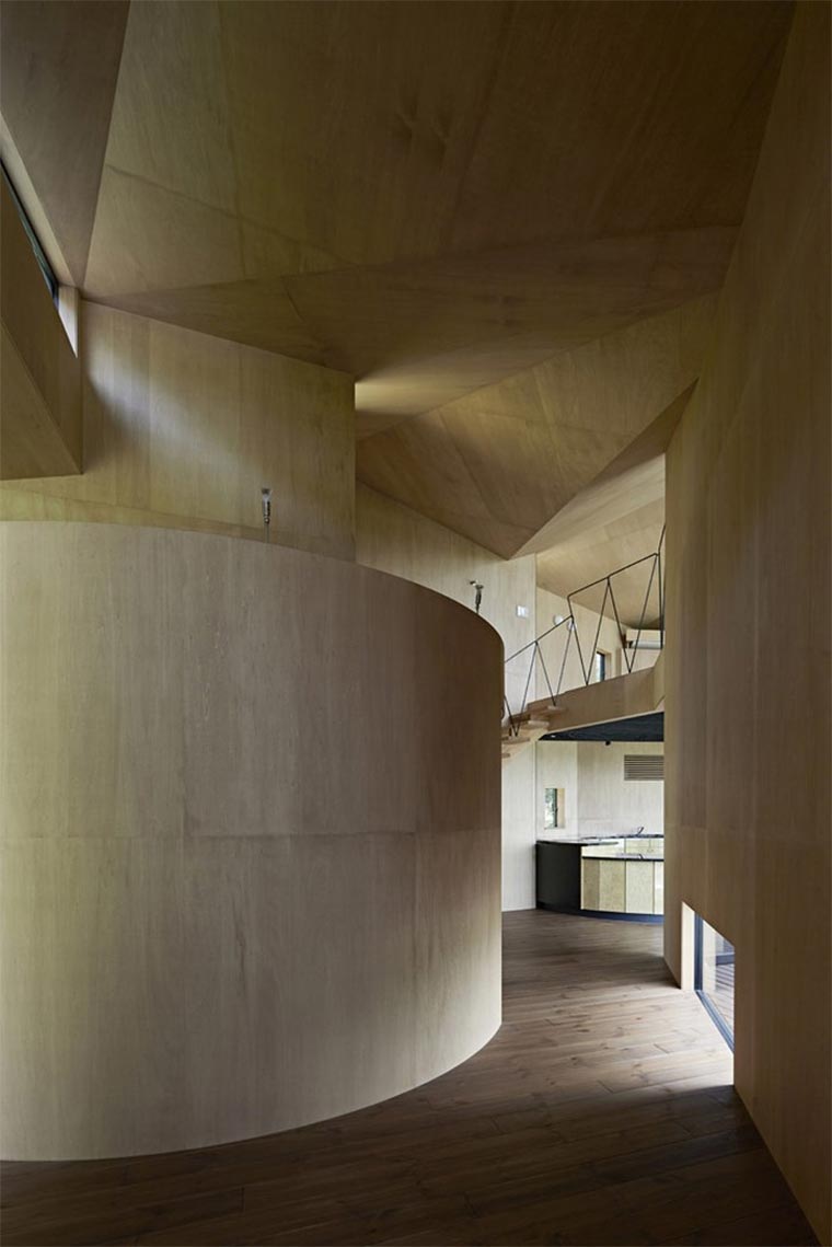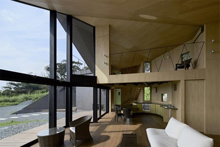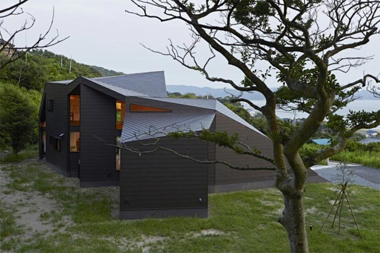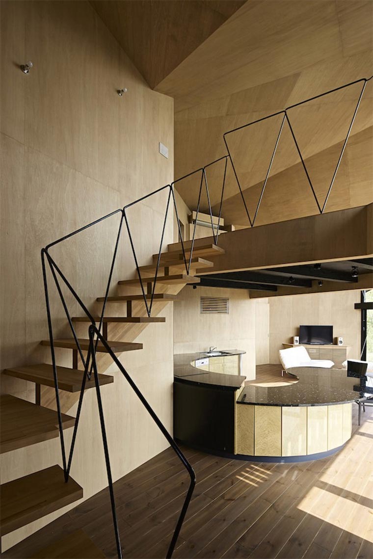 Im japanischen Chiba steht diese Perle der Architektur. Verwinkeltes Design, dunkel-anthrazite Fassade und edle hellbraune Innenverkleidung. Gerade die dynamische Linienführung sowie der hohe Anteil an Verglasung und der damit einhergehende Lichteinfall machen dieses Objekt zu einer sehr originellen und stylischen Architektur-Übung. Verantwortlich dafür zeichnet sich das Büro Takeshi Hirobe Architects.