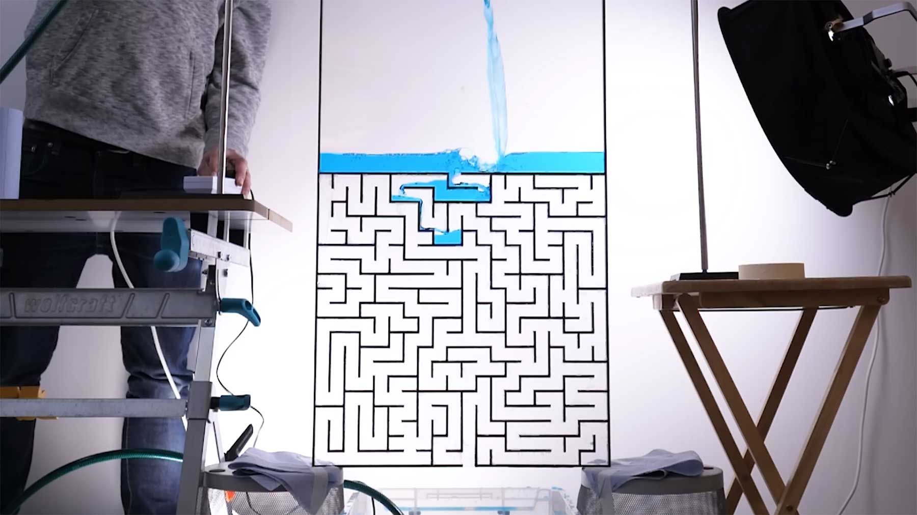 Da will man eigentlich nur kurz zu sehen bekommen, wie das aussieht, wenn echtes Wasser durch ein echtes Labyrinth einen Irrgarten (s. Kommentare) fließt, und plötzlich hat man acht Minuten Steve Mould dabei zugehört, wie er uns die Situation erklärt. Physik kann auch ziemlich verspielt und unterhaltsam sein!