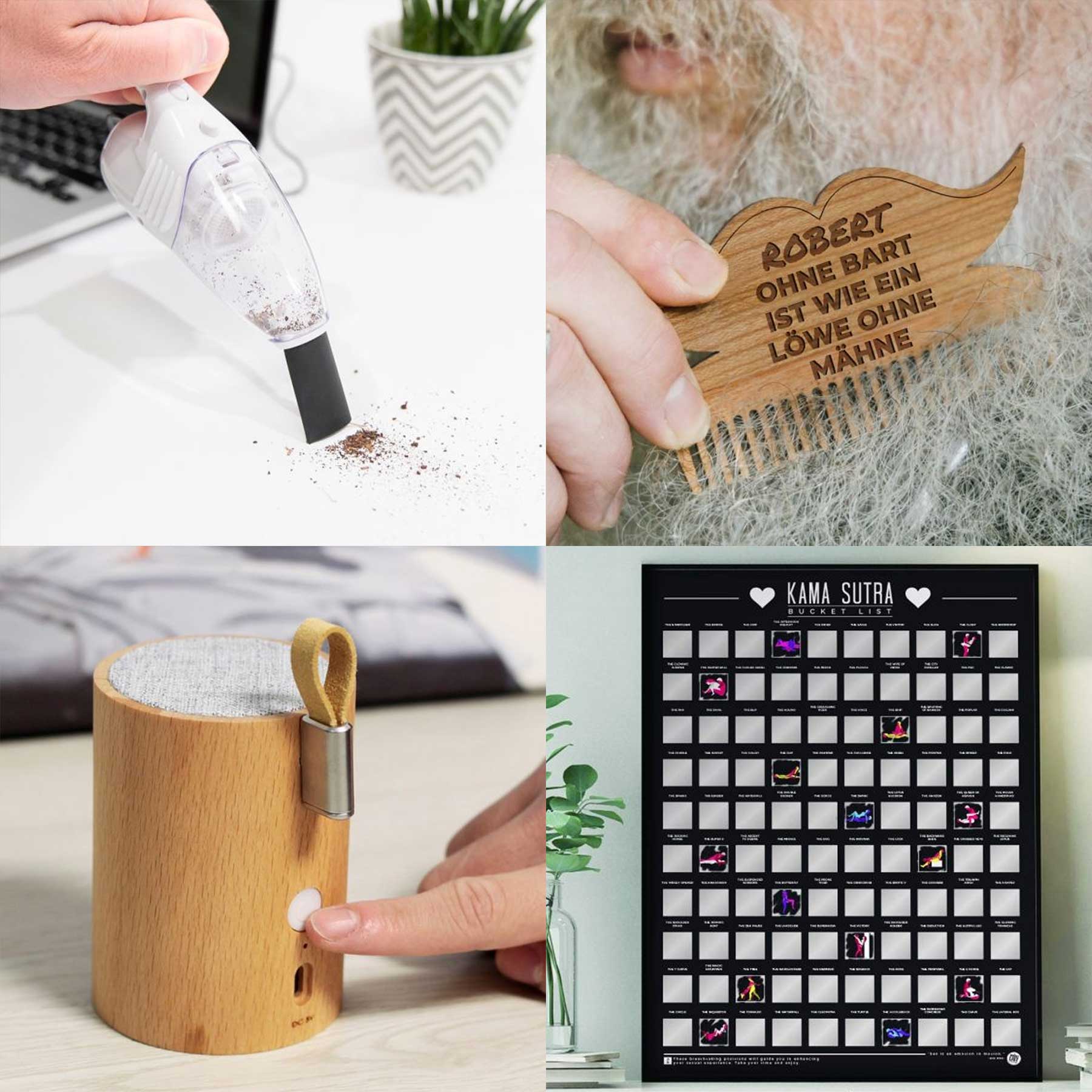Stylisch und invidiuell wird es mit dem personalisierten Bartkamm und wer es frivoler mag, kann ein Rubbel-Poster mit 100 Kamasutra-Stellungen verschenken.