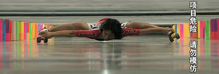 Wu Xue aus China kann in 7,974 Sekunden 50 Meter lang Limbo-Skaten. Dafür kann ich 50 Sekunden lang auf Skates Limbo spielen. Also das X-Box-Spiel. Total toller Vergleich…
