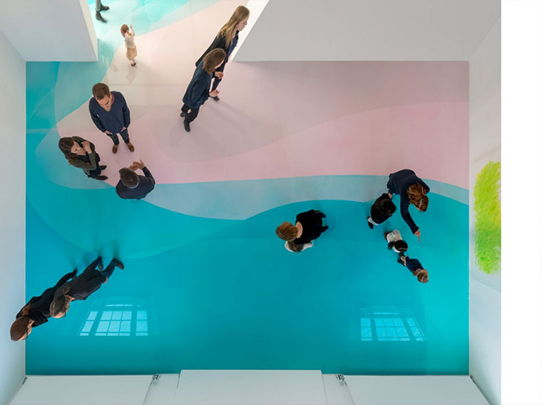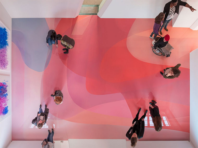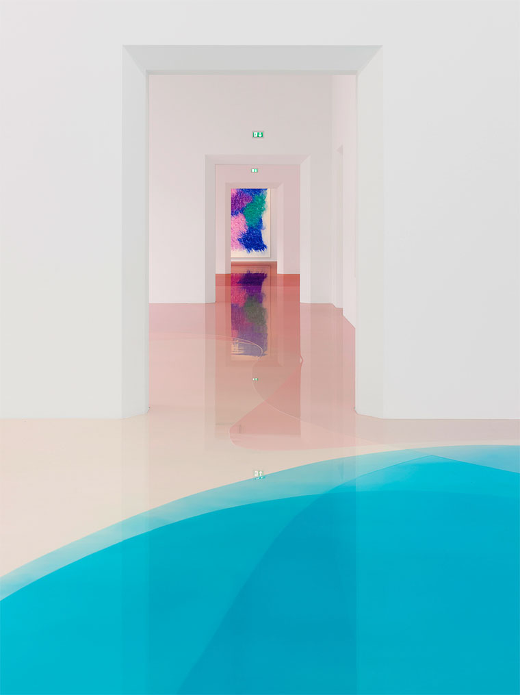 130 Quadratmeter im Museum für Neue Kunst in Freiburg hat Künstler Peter Zimmermann verschönert. Nein, nicht die Wände, sondern den Boden. Durchgehend in farbenfroher Manier. Dabei gefällt mir besonders, dass es eigentlich dann doch recht zurückgenommen ist. Die Farbverläufe und -Formen sind stets elegant und großflächig gehalten. Gefällt mir sehr gut und gibt den sonst so langweiligen (ja, das ist bewusst so, I know) Museumsböden eine deutliche Auffrischung.