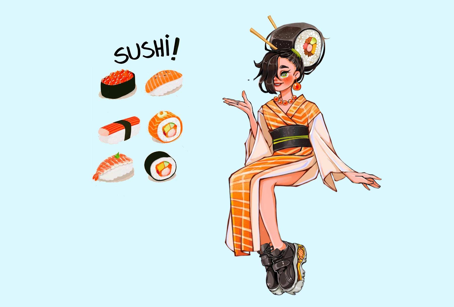 „There are three things I do to relax: drawing, cooking, and eating. So on the verge of an art block, I decided to challenge myself with character design. Combining two things I love the most seemed like a project I’d have the most fun with. And I did! I had to do a little research about the specific food or snack’s origin, production process, and discovered so much more when people started commenting and telling me about their homeland’s most popular food! Overall, it was a very fun and sometimes mouth-watering experience (when searching for reference photos on Pinterest).“